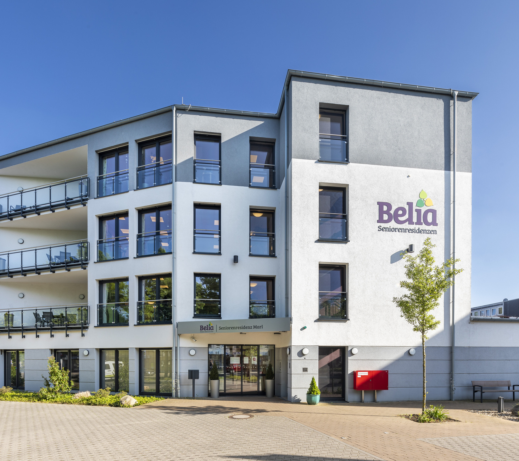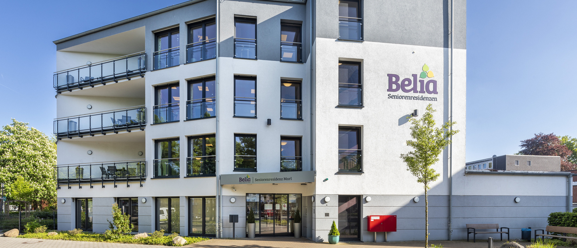 Die stadtmittig gelegene Belia Seniorenresidenz Marl liegt mit ihren 80 stationären Pflegeplätzen in einem gepflegten, grünen Wohngebiet in Marl-Drewer. In unmittelbarer Nachbarschaft sind Restaurants, Geschäfte, Apotheken, Ärzte, Optiker und ein Supermarkt fußläufig bequem erreichbar. Die nahegelegene Bushaltestelle "Pfarrkirche St. Josef" bietet beste Anbindungsmöglichkeiten. Nur unweit gelegen befindet sich das Paracelsus-Klinikum.