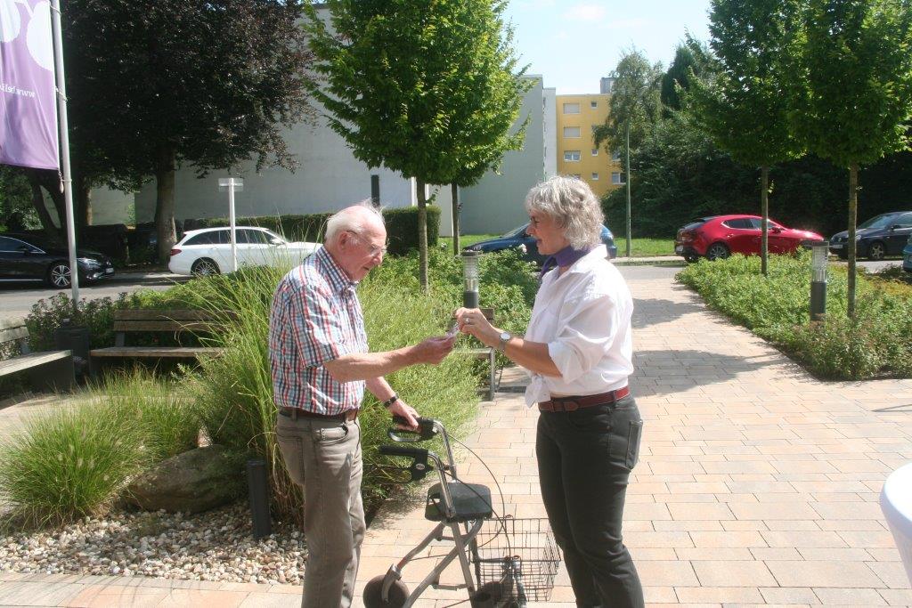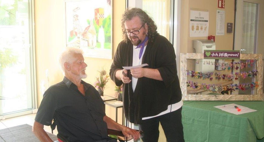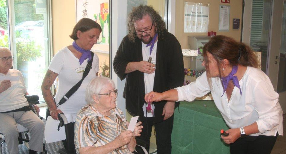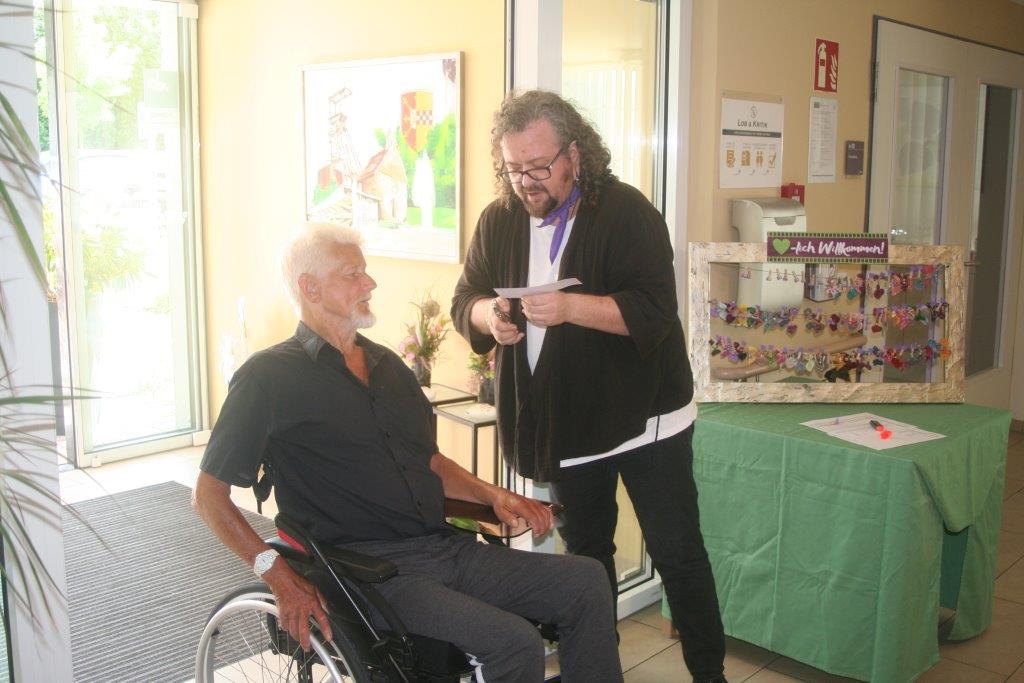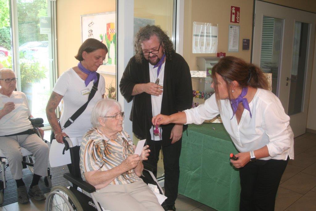Die BewohnerInnen wurden zur großen Kino-Premiere eingeladen und erhielten am Eingang Eintrittskarten, die dort entwertet wurden. Als besondere Überraschung gab es für jeden ein liebevoll gehäkeltes Herz von Sixten Weishaupt, einem engagierten Mitarbeiter des BSD.