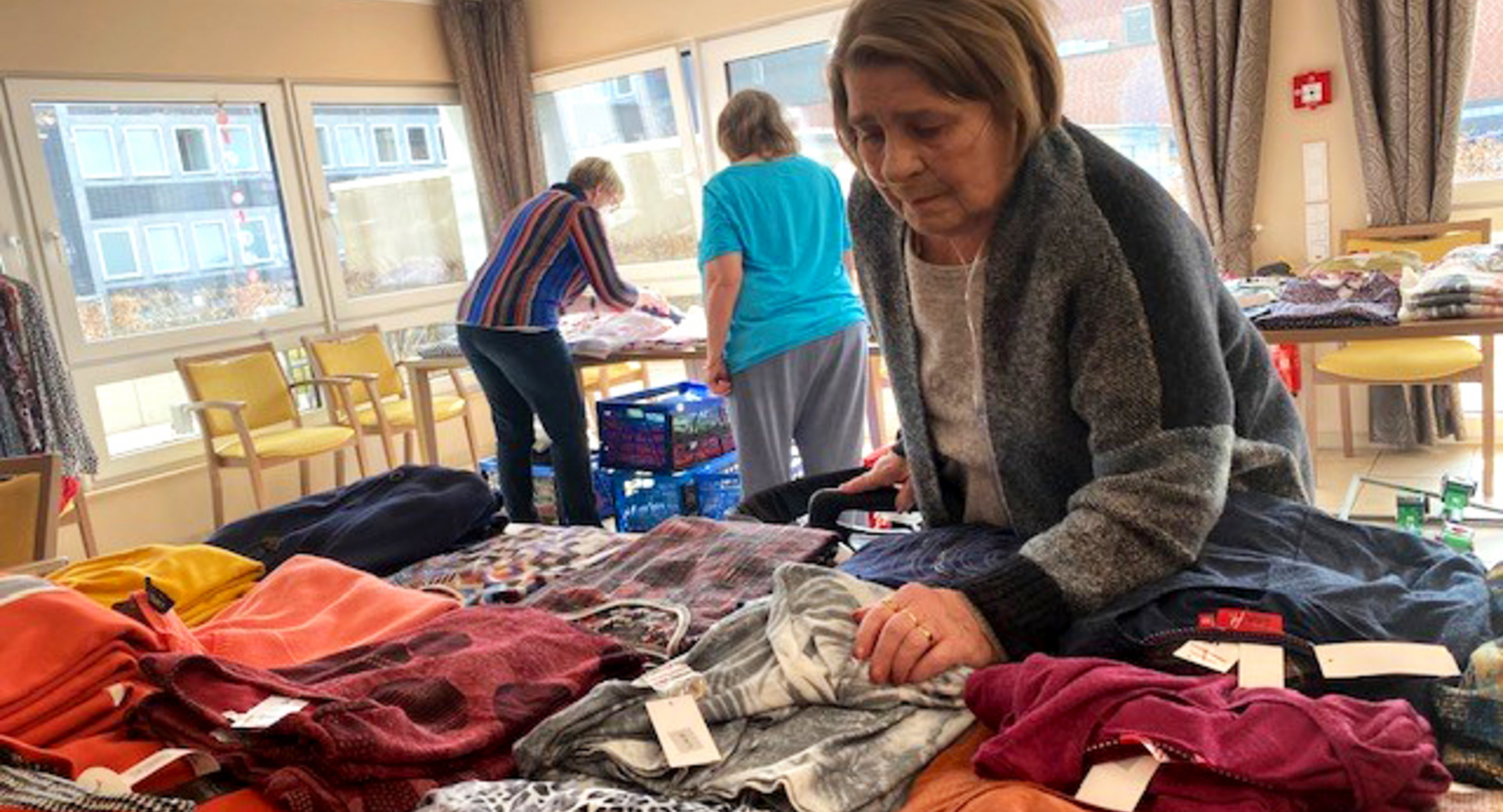 Marl. Heute wurde das Bewohnerrestaurant in eine tolle Modeboutique verwandelt. Nach langer Zeit durfte mal wieder ausgiebig gebummelt, anprobiert und gekauft werden. Natürlich mit Abstand und immer wieder frischer Frühlingsluft.