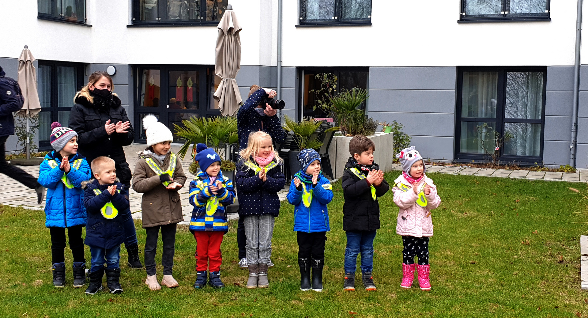 Überruhr-Holthausen. Anlässlich des Nikolaustags waren die Kindergartenkinder der Kita Bulkersteig im Garten der Belia Seniorenresidenz Holthausen zu Besuch.