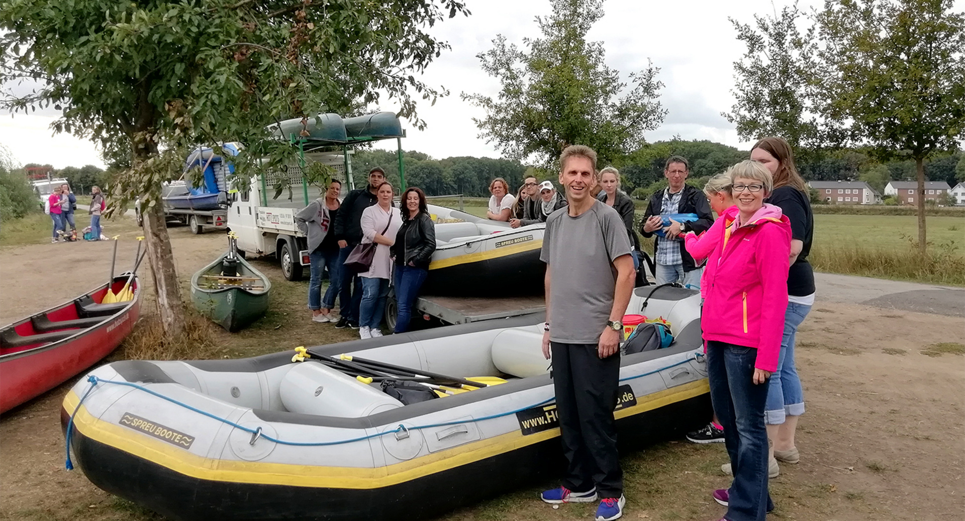 Kamp-Lintfort. An einem der letzten schönen Sommertage trafen sich die Mitarbeiter der Belia Seniorenresidenz Kamp-Lintfort, um mit extra großen Schlauchbooten die Niers zu erkunden.