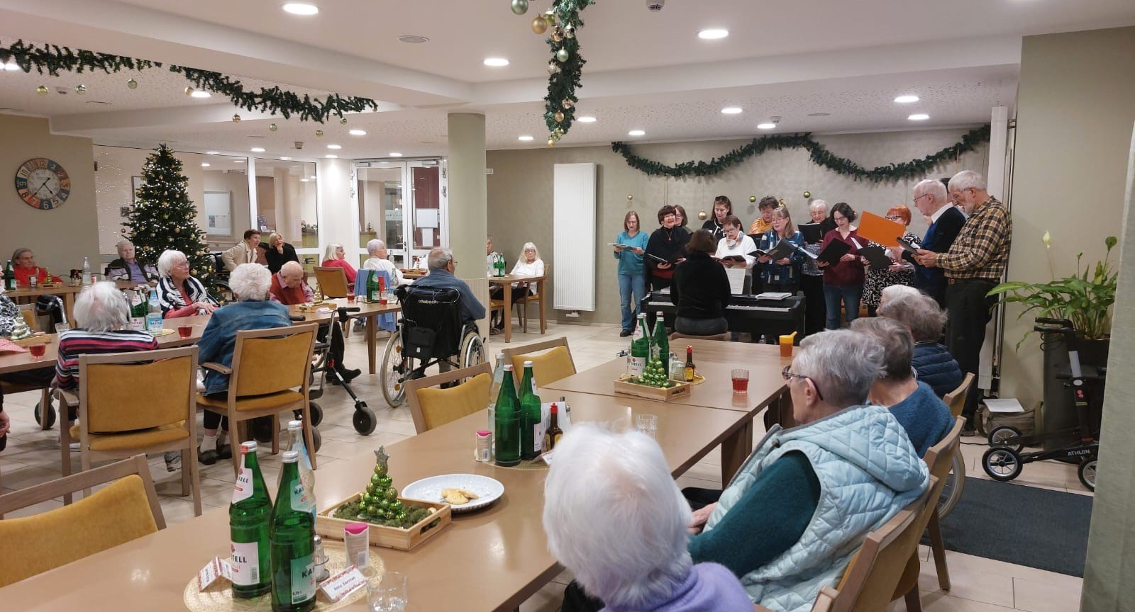 In einer besinnlichen und fröhlichen Atmosphäre, die durch die Klavierbegleitung von Frau Rutzki, der Leiterin des Chors, einen schönen Adventabend für viele Bewohner gezaubert hatte.