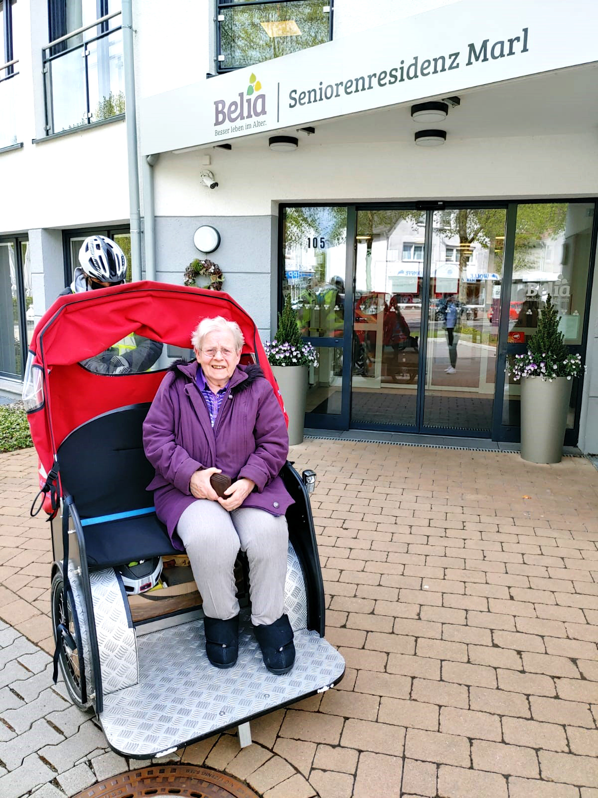 Bei der etwa einstündigen Rikscha-Fahrt durch Marl genießen unsere Bewohner und Bewohnerinnen ihren Heimatort, entdecken und erinnern sich freudig an verschiedene Örtlichkeiten und damit verbundener Begebenheiten aus ihrer Biografie. Besonders die frische Luft und das Erwachen der Natur tut ihrer Seele gut.