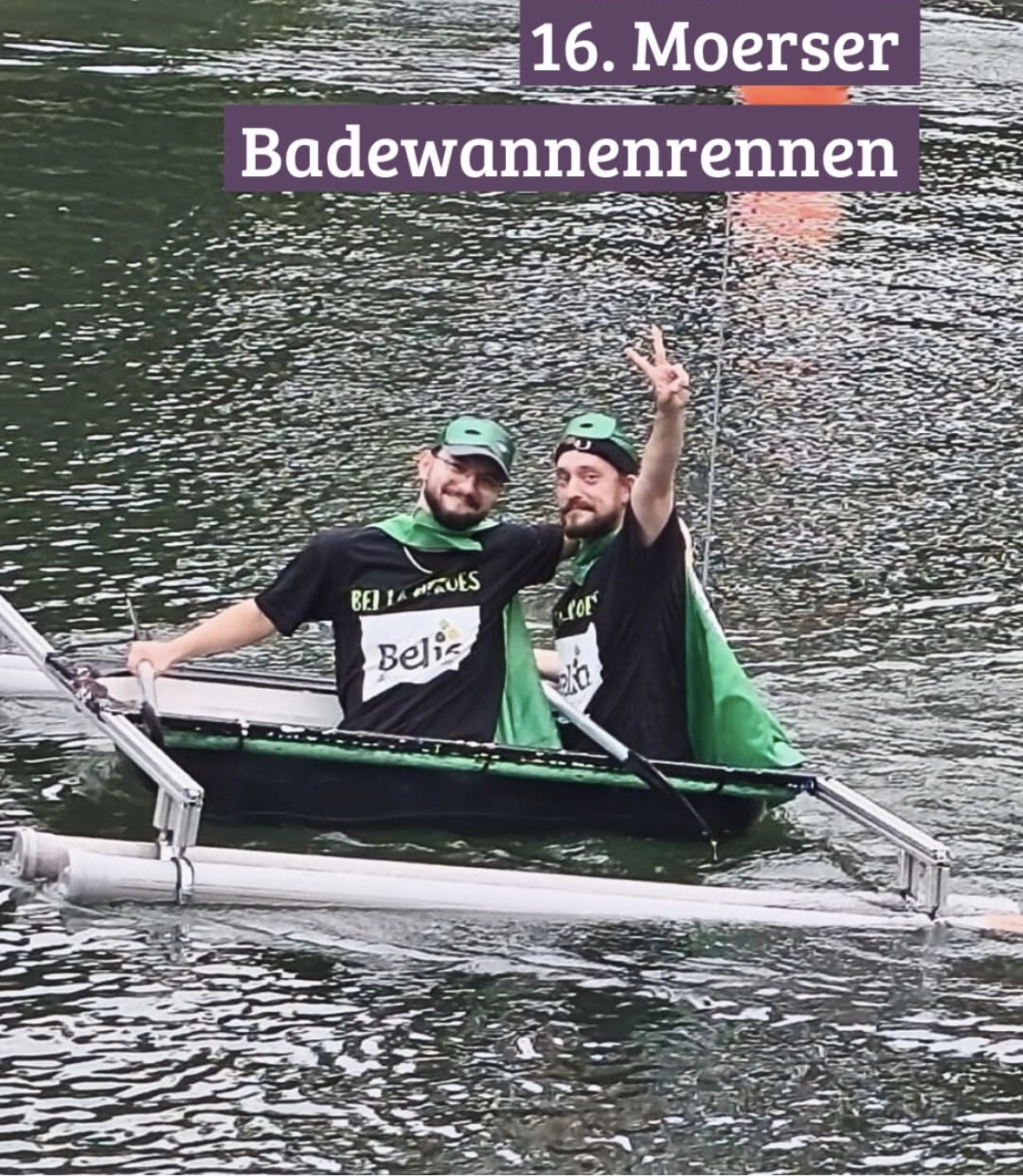 „Mit großer Macht kommt große Verantwortung“ – Durchdrungen von magischer Superkraft bestiegen unsere Belia-Helden Nils Geblonsky und Marc Fiebig in grünen Capes ihre Badewanne und kämpften für den Ruhm und die Ehre der Belia Kapellen.