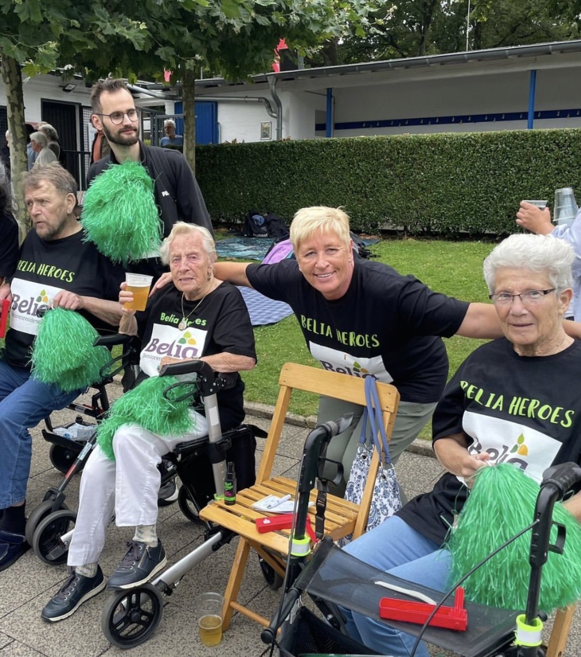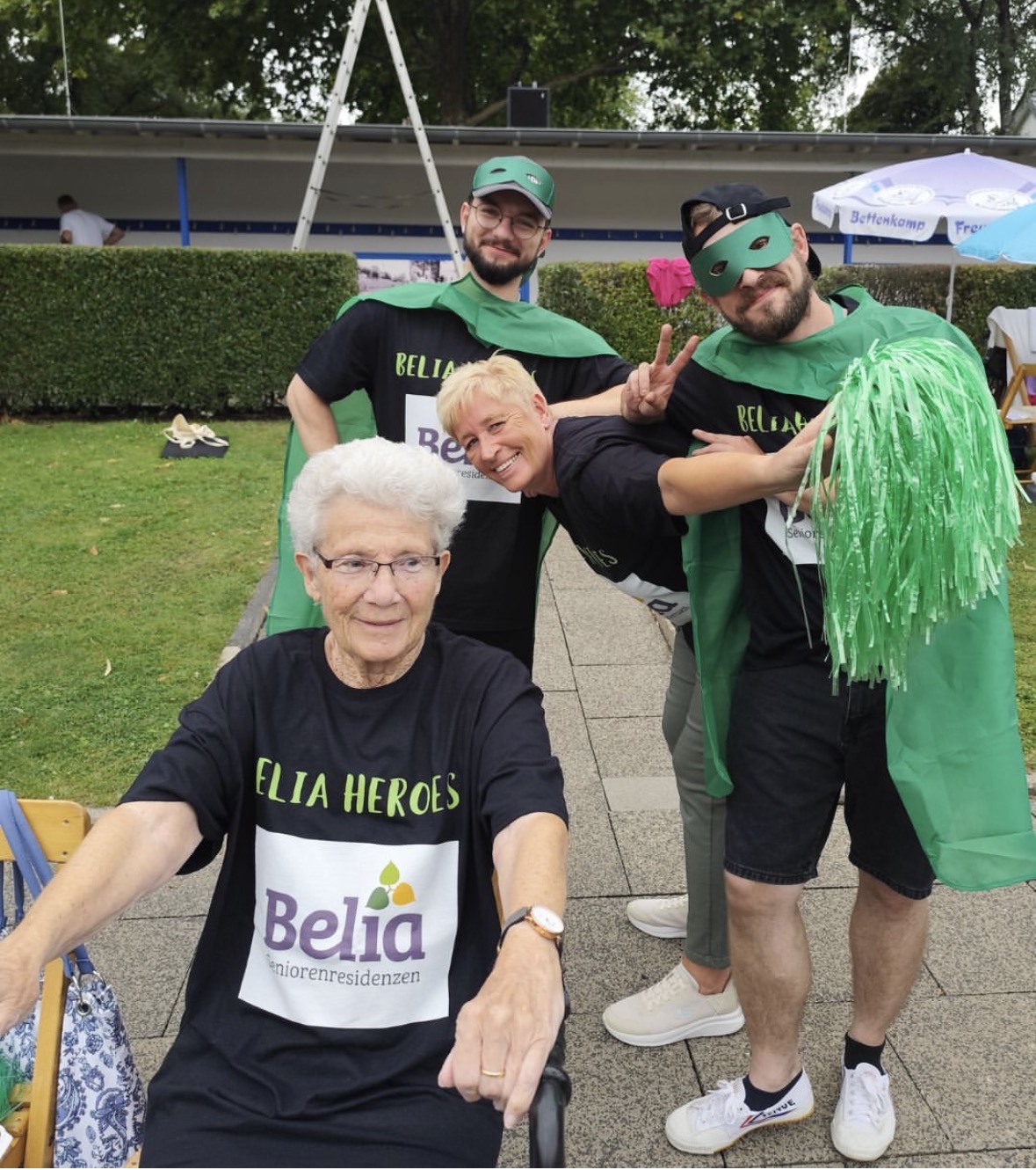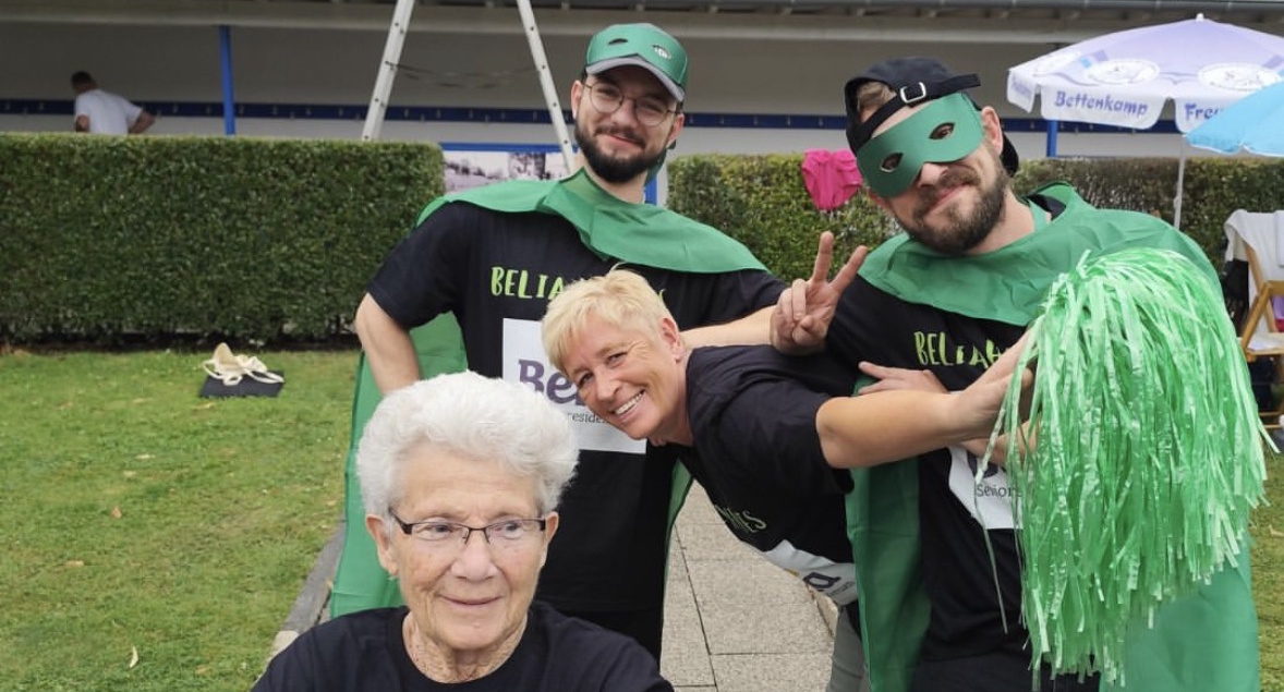 Die beiden Mitarbeiter des Betreuenden Sozialen Dienstes hatten sich schon Monate vorher zum Rennen angemeldet. Das war nicht unbemerkt geblieben, so dass sie am Renntag von BelianerInnen, BewohnerInnen und Angehörigen mit Rasseln und Pompoms lautstark angefeuert wurden.Alle Anwesenden waren stolz auf die Jungs und feierten und beglückwünschten sie herzlich.