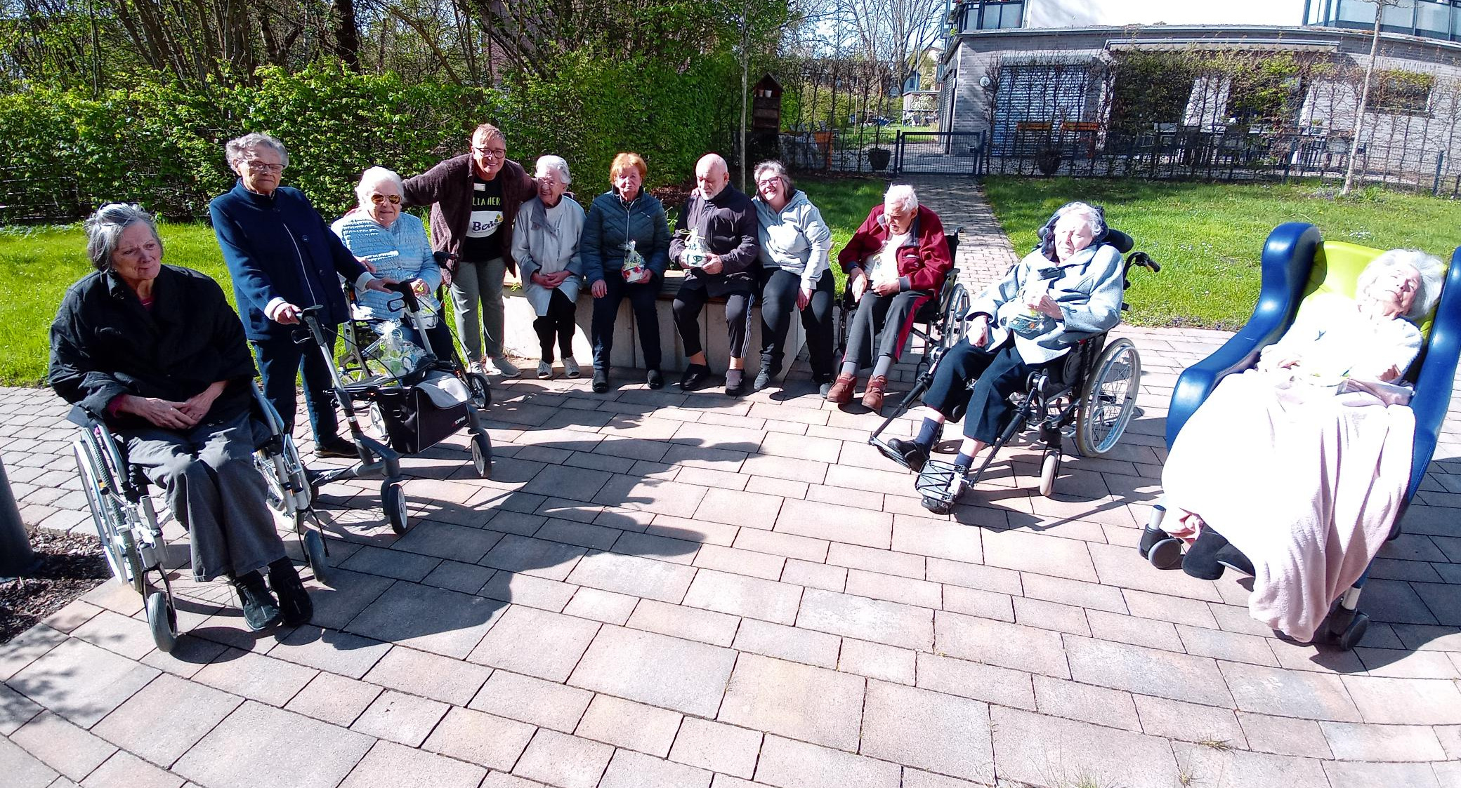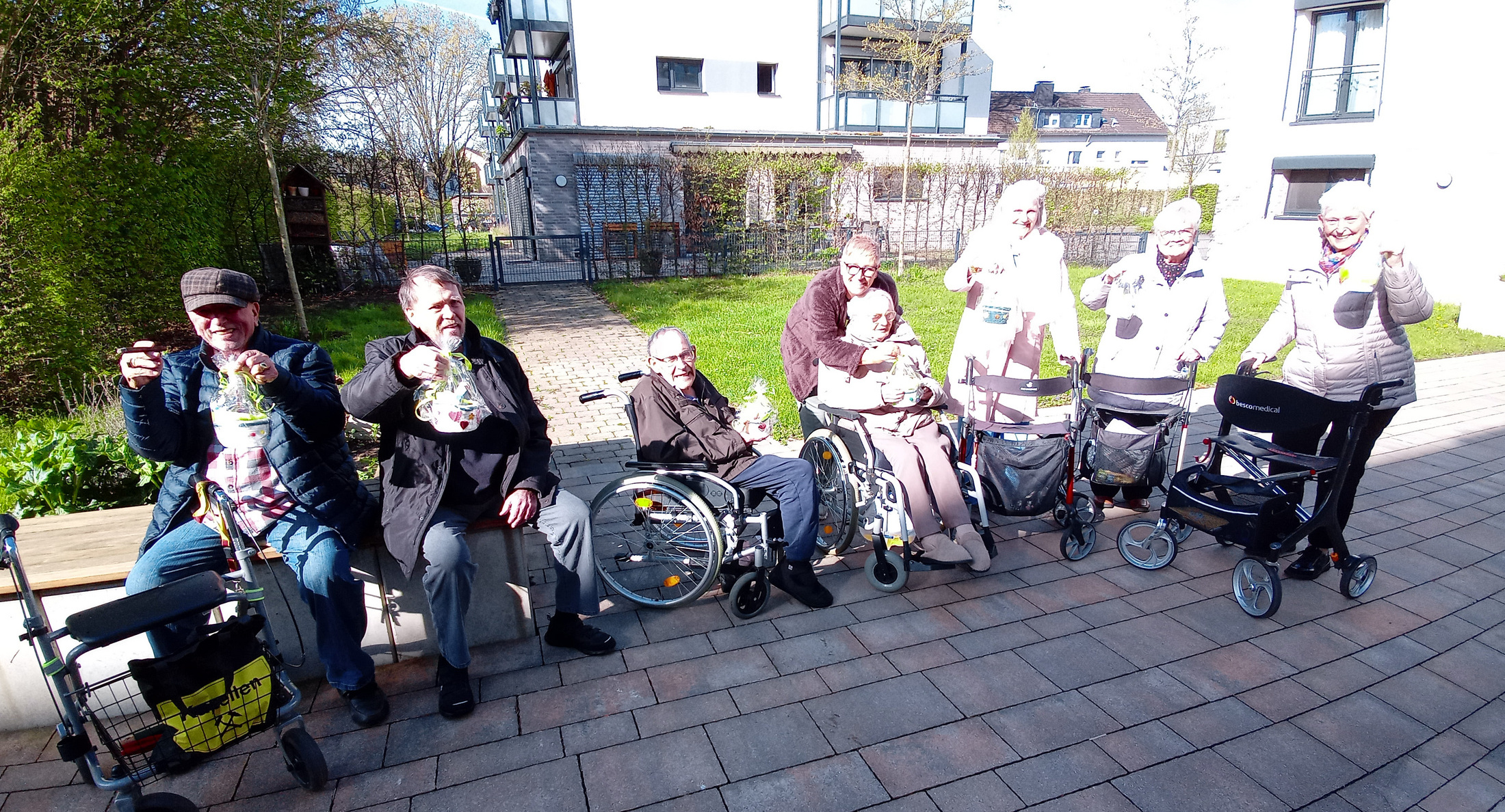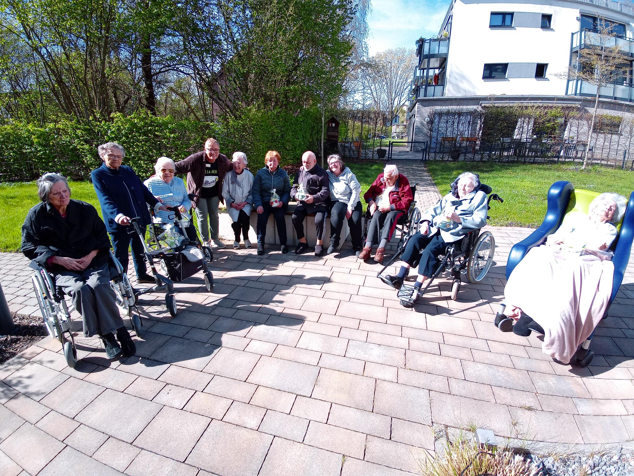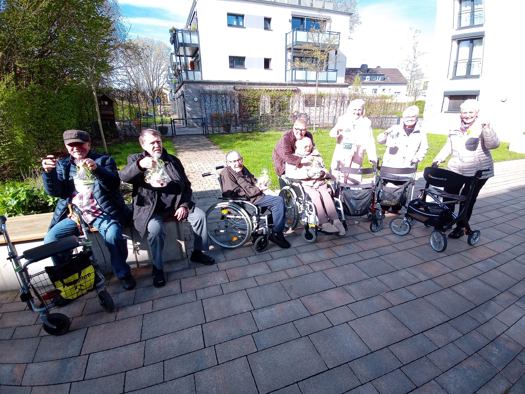 Der Betreuende Soziale Dienst organisierte gemeinsam mit einigen Bewohnerinnen und Bewohnern eine liebevoll vorbereitete Ostereiersuche im Hausgarten.