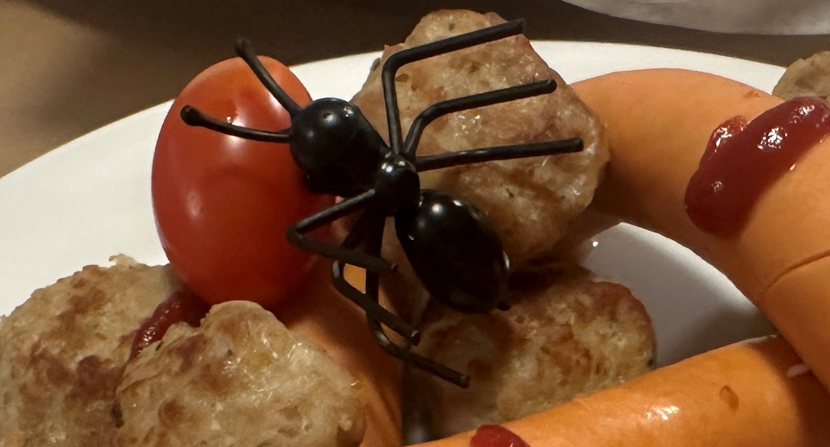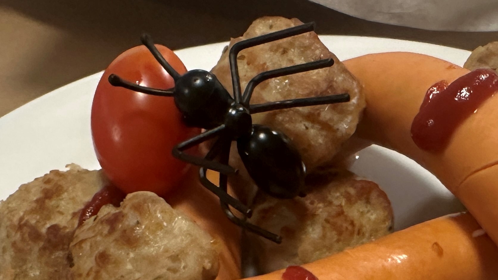 Wenn ein Dino die Deko frisst, Ameisen die Tomaten klauen und das Küchenteam Eulen- und Fledermausmuffins, Fingerwürstchen und grüne Bowle serviert, dann kommen die Geister hervor und feiern eine schaurig-schöne Party.