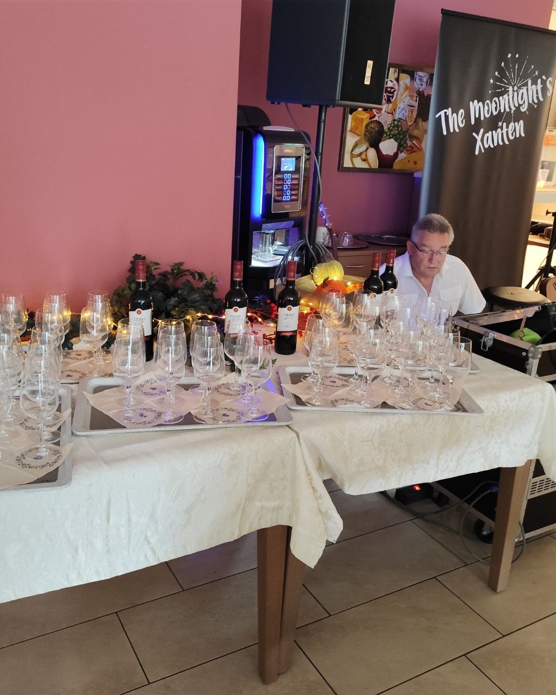 Der Sommer geht, der Wein kommt! Leckerer Wein in rot und weiß (auch alkoholfrei), Zwiebelkuchen, Käseplatten und Brot erinnerten an bunte Herbsttage im Elsass oder an der Mosel – tatsächlich aber fand das Weinfest in Moers-Kapellen statt. Nicht nur kulinarisch, sondern auch musikalisch wurde gefeiert: Das Xantener Duo The Moonlights spielte Evergreens und aktuelle Songs zum Schwoofen, Singen und Tanzen.