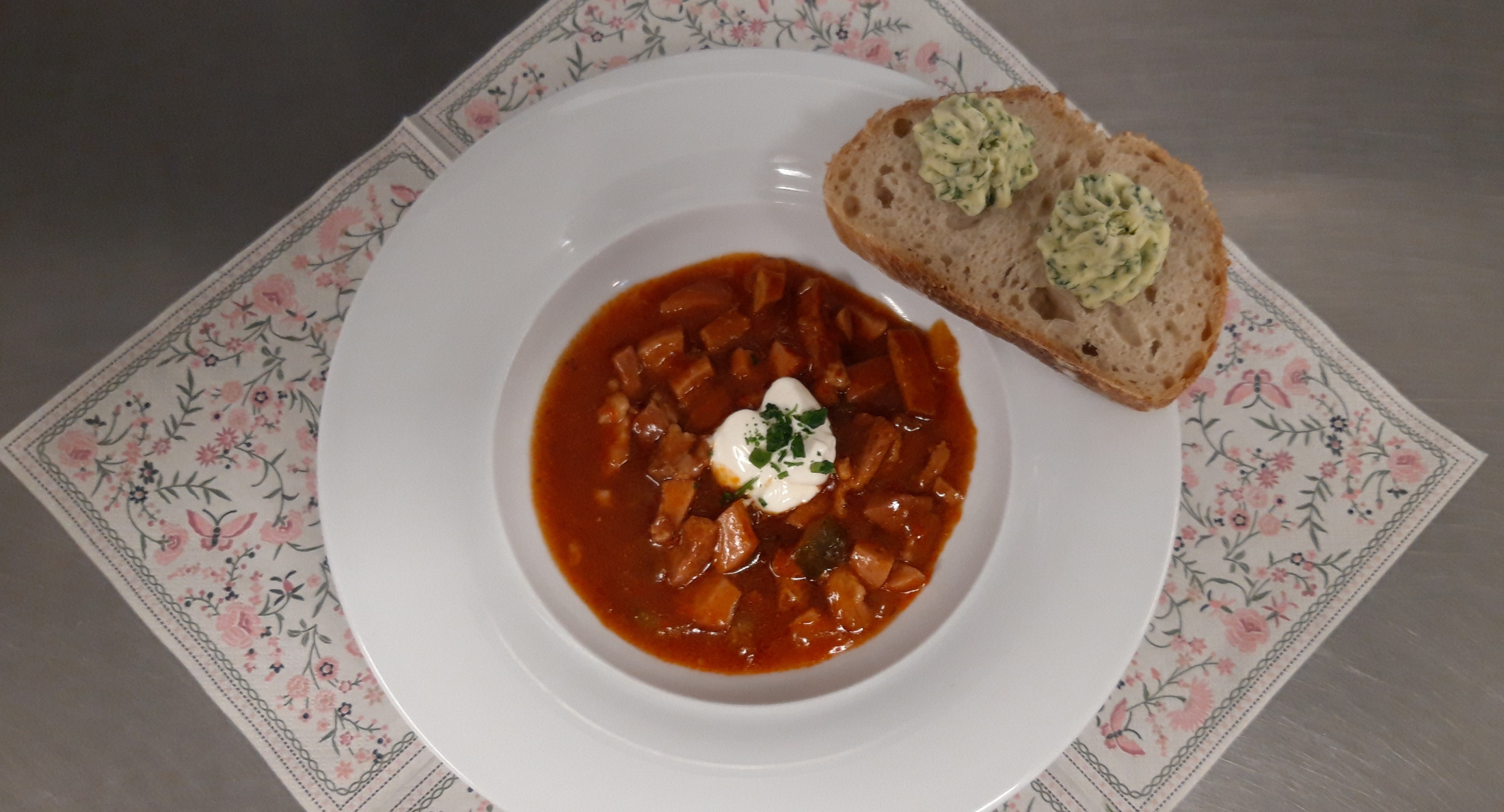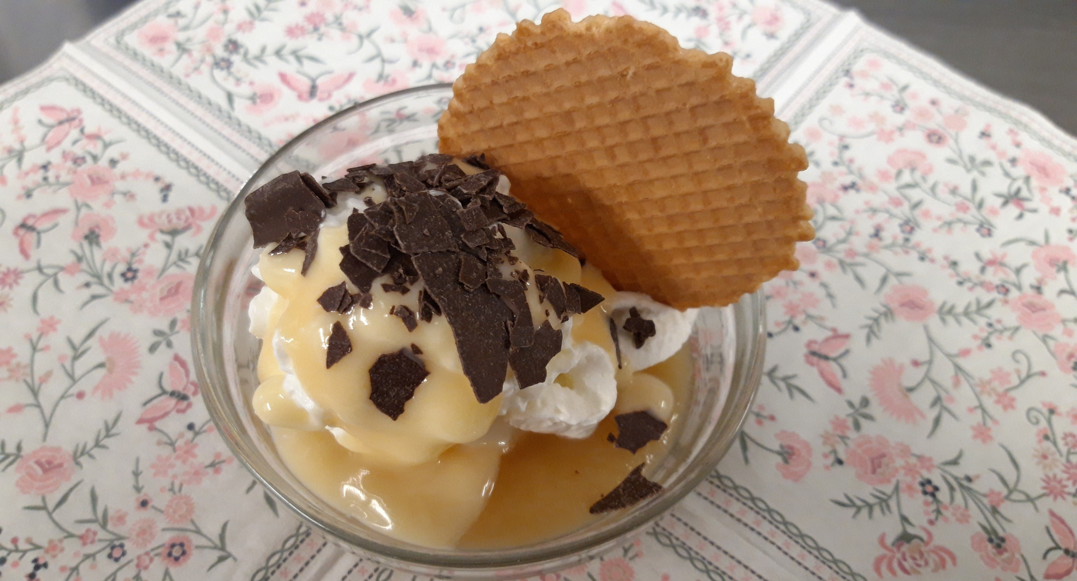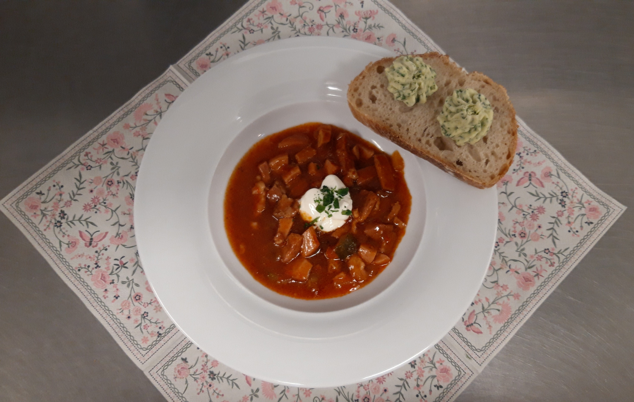 Dann wurde das Essen serviert, eine Soljanka, typisch für Osteuropa und eben auch der „alten“ DDR. Zunächst skeptisch beäugt, dann aber allseits für gut befunden; von einigen BewohnerInnen wurde direkt ein Nachschlag verlangt. Abgerundet wurde die Suppe mit frischem Baguette und Kräuterbutter. Das Dessert war ebenfalls eine Besonderheit aus der DDR-Küche: der Schwedeneisbecher.