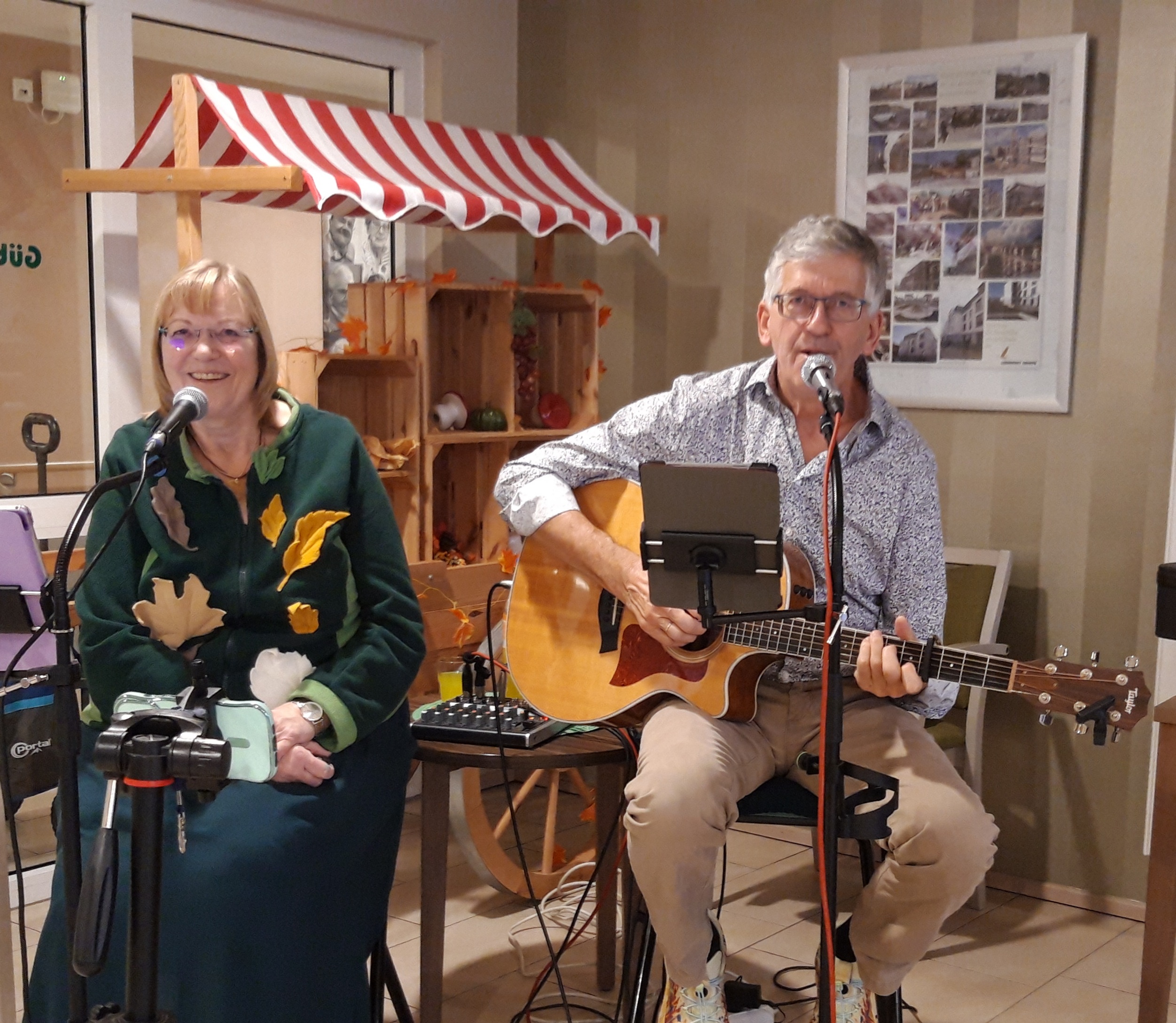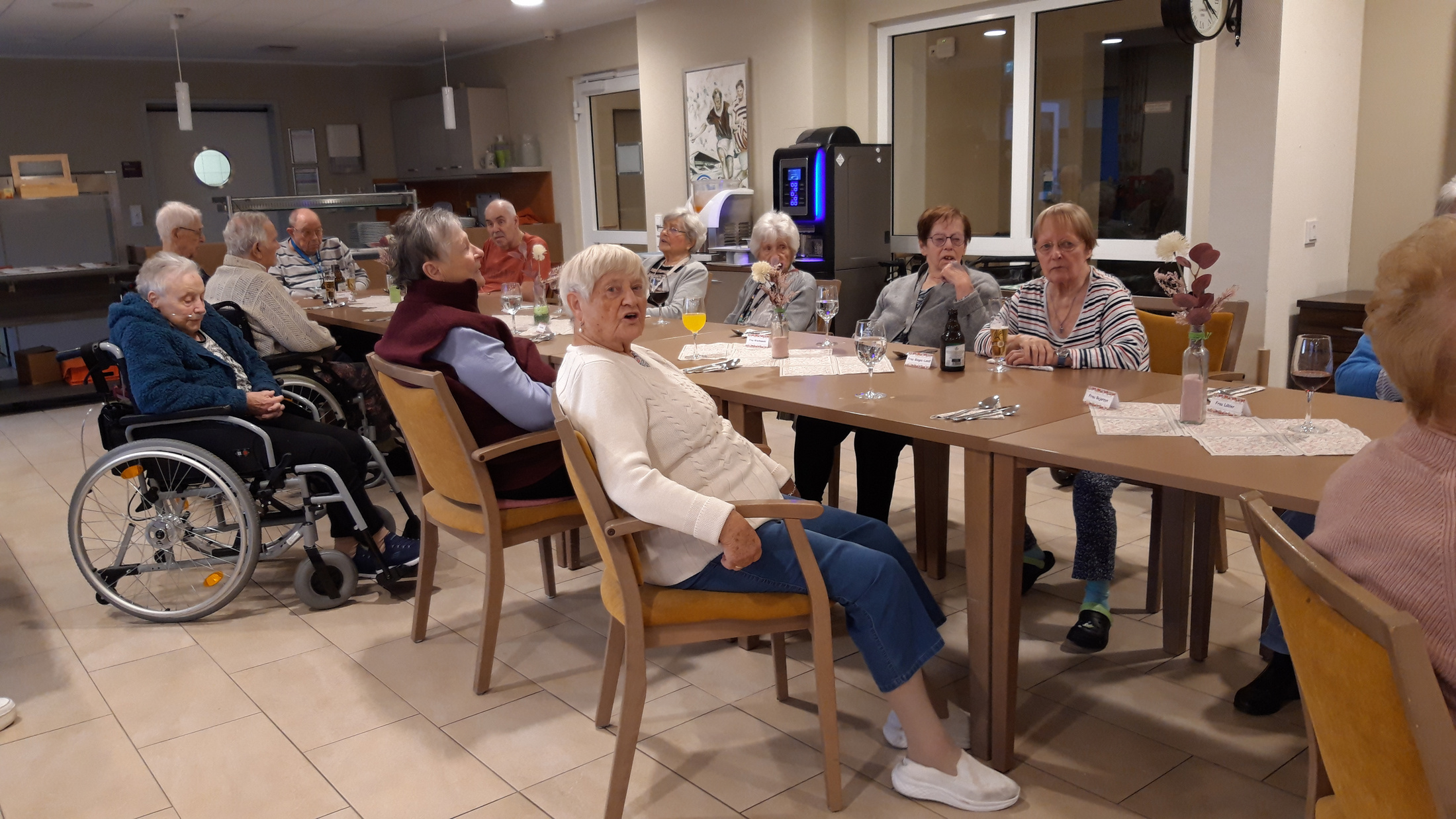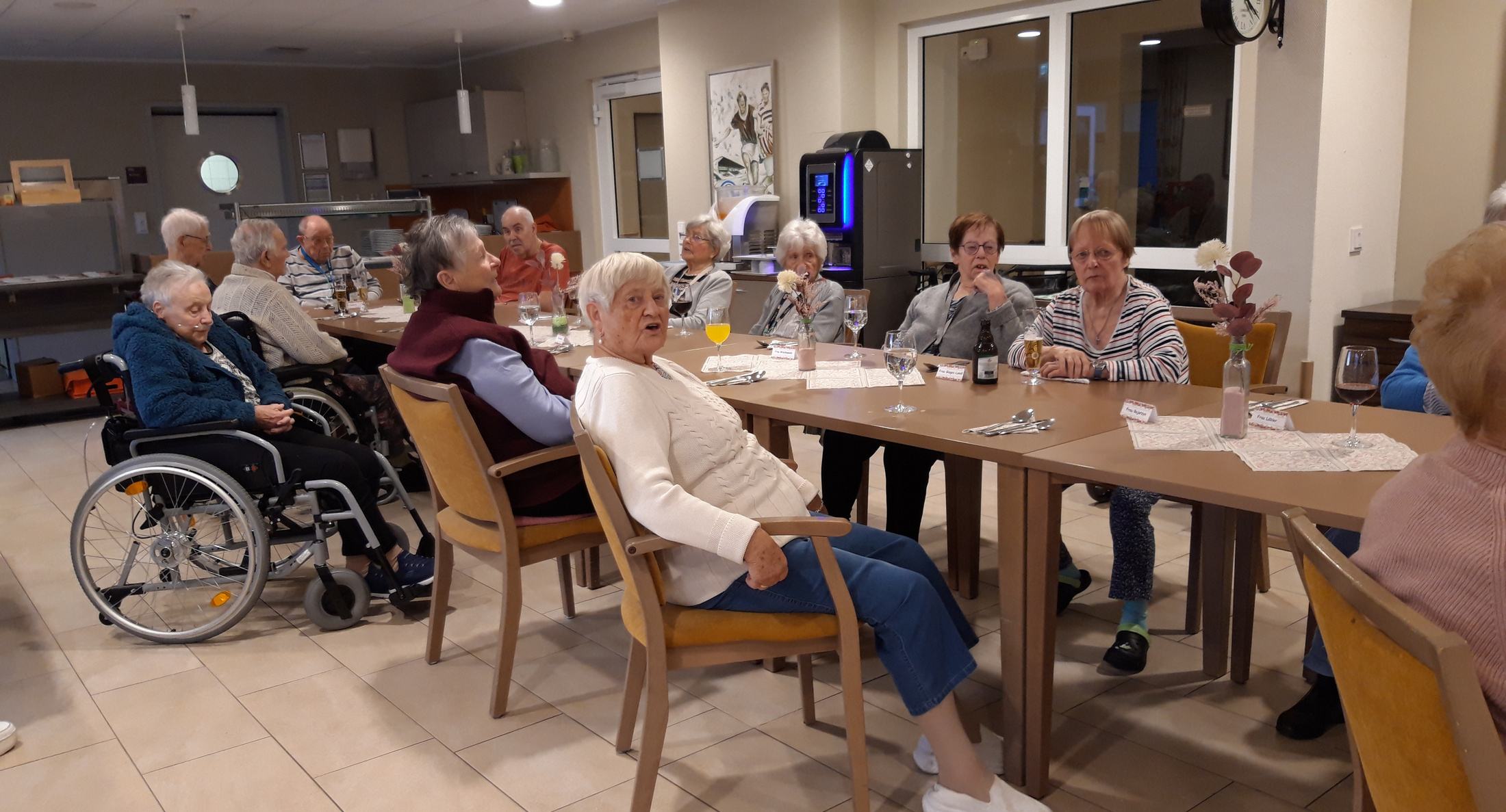 „Was gibt es denn da wohl zu essen?“, diese Frage wurde von allen Seiten gestellt. Die Antwort musste noch etwas auf sich warten lassen, zunächst einmal wurden die BewohnerInnen musikalisch von dem Ehepaar Bruns unterhalten. Das Paar feierte in unserer Einrichtung Premiere und kam mit einer Mischung aus altbekannten Volksliedern und Schlagern gleich richtig gut an. Vom ersten Lied an wurde mitgesungen und geschunkelt, die eine oder andere Bewohnerin wagte sich sogar auf das Tanzparkett.