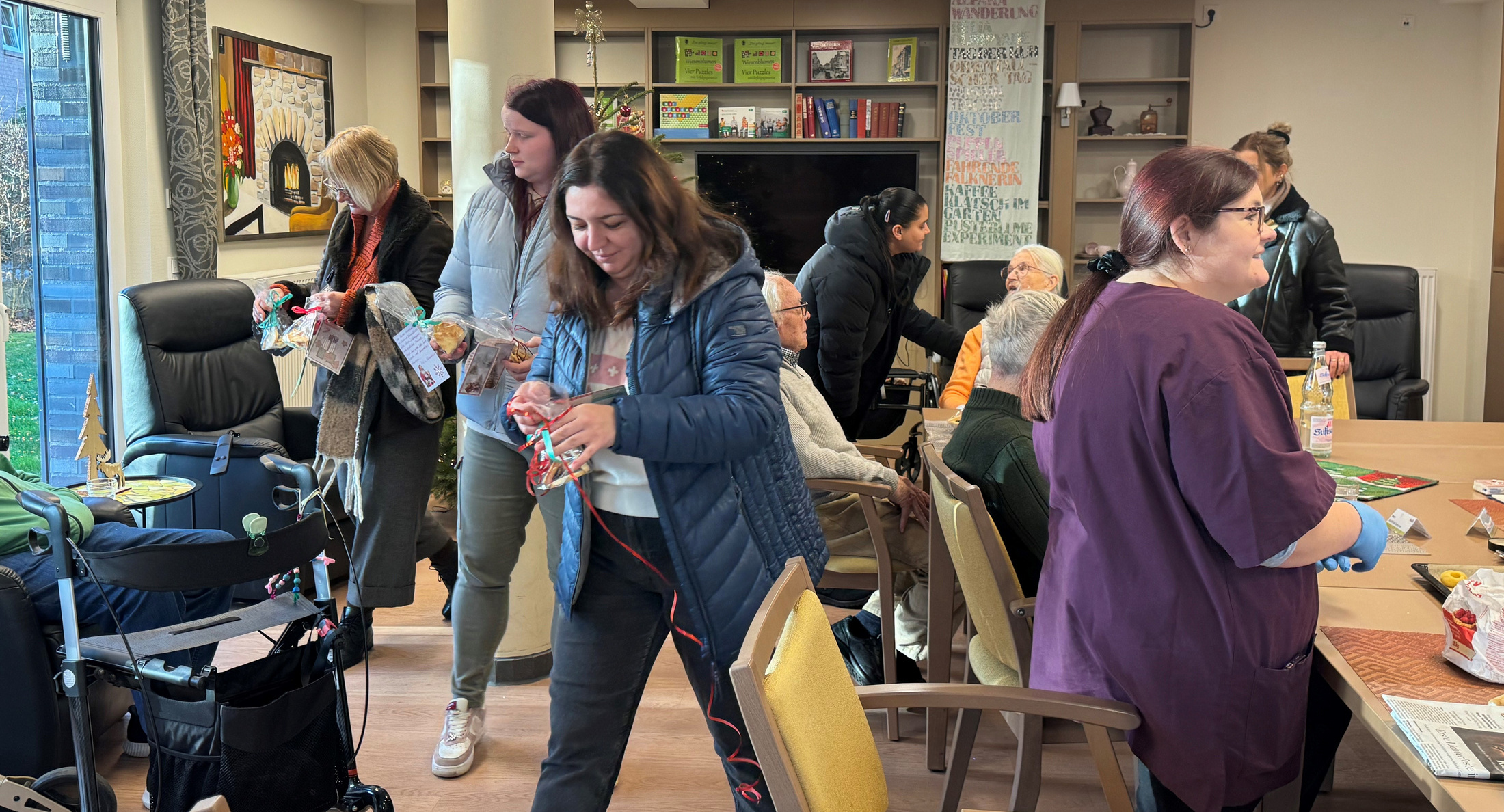 Die Dozenten des Fachwerks Moers sowie ihre Schülerinnen und Schüler haben uns besucht und für jeden unserer Gäste ein kleines Päckchen mit frisch gebackenen Plätzchen und einer persönlichen Weihnachtskarte überreicht.