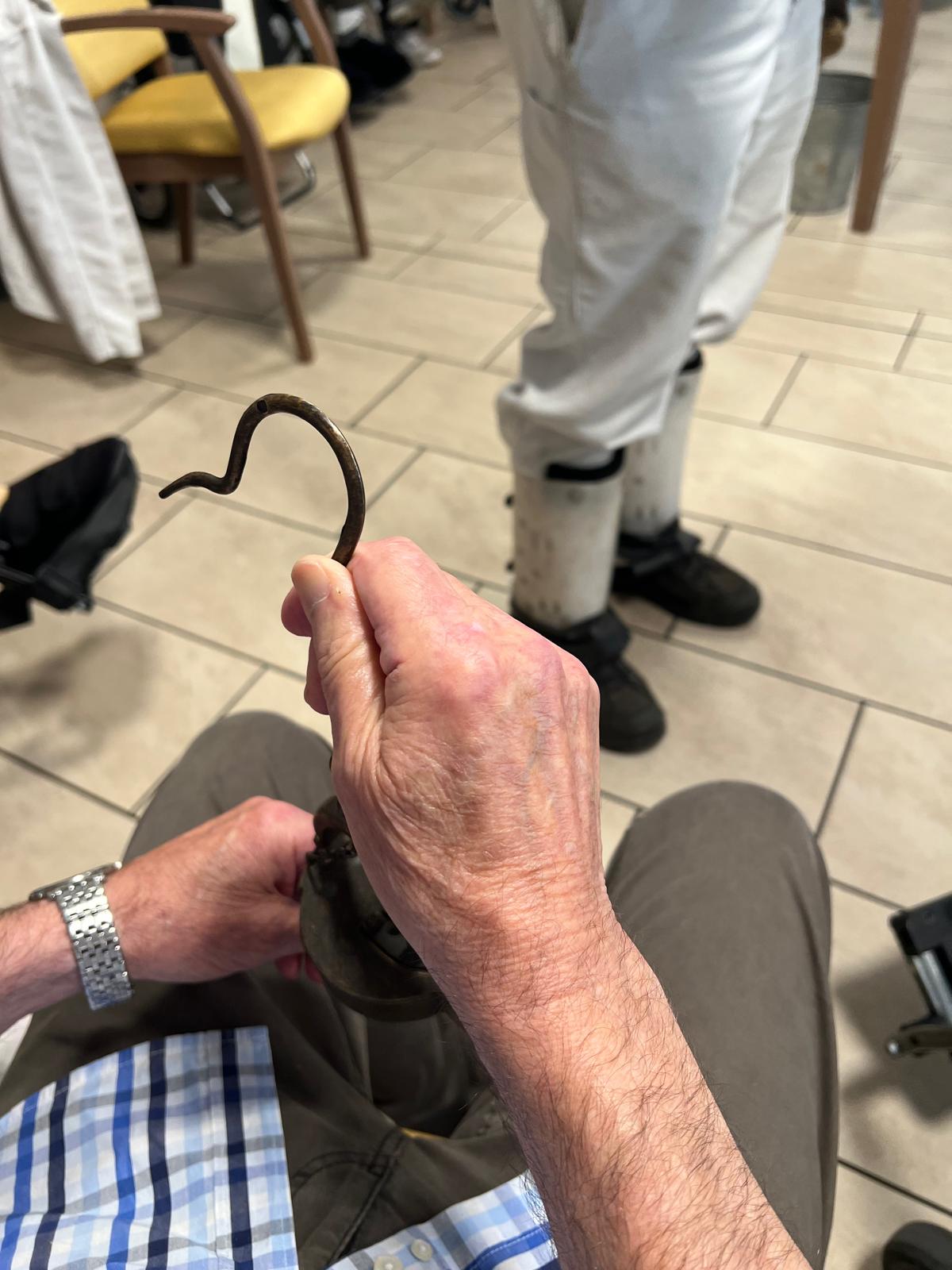 Herr Lade, ein ehemaliger Steiger, kam vorbei und brachte viele Erinnerungen aus der Bergbauzeit mit, zum Erzählen, Anfassen und Ausprobieren.
