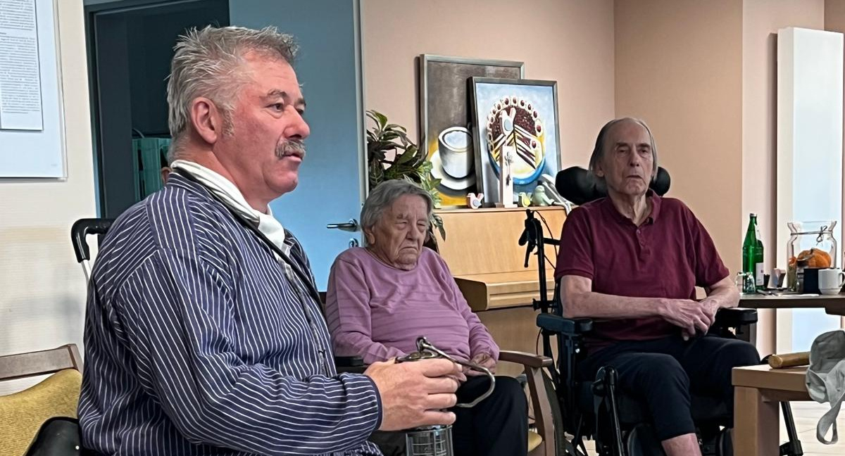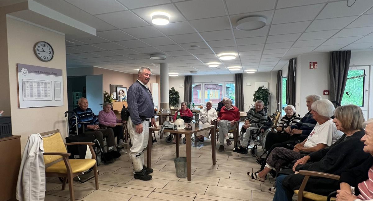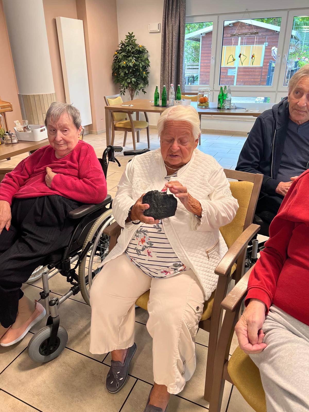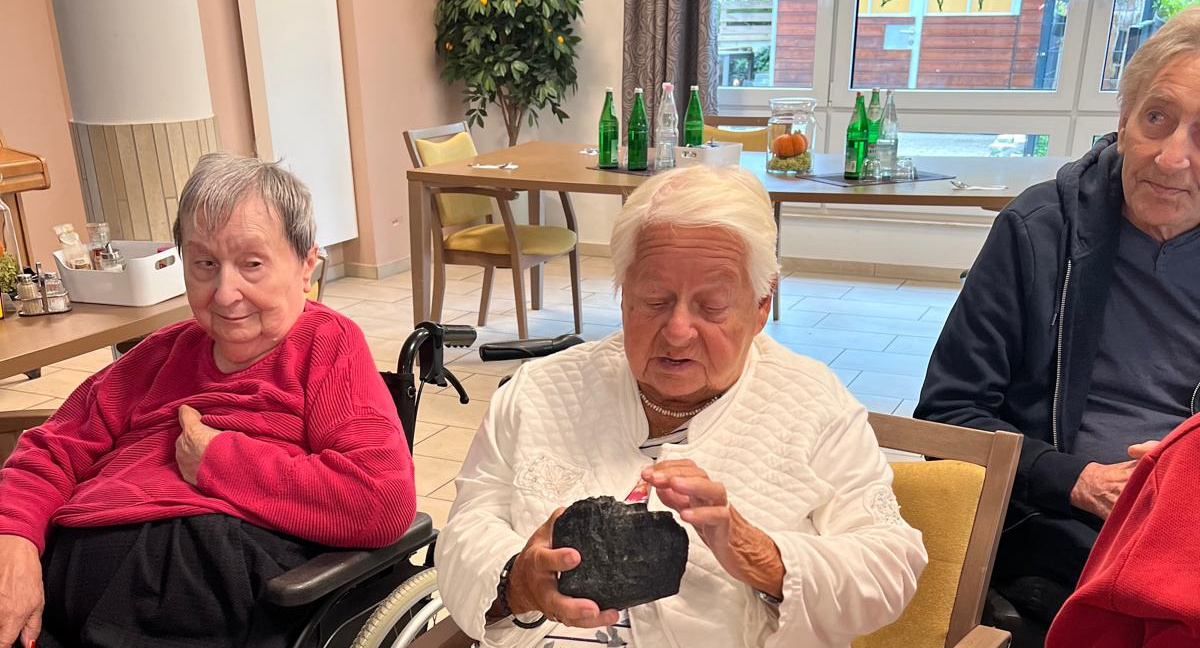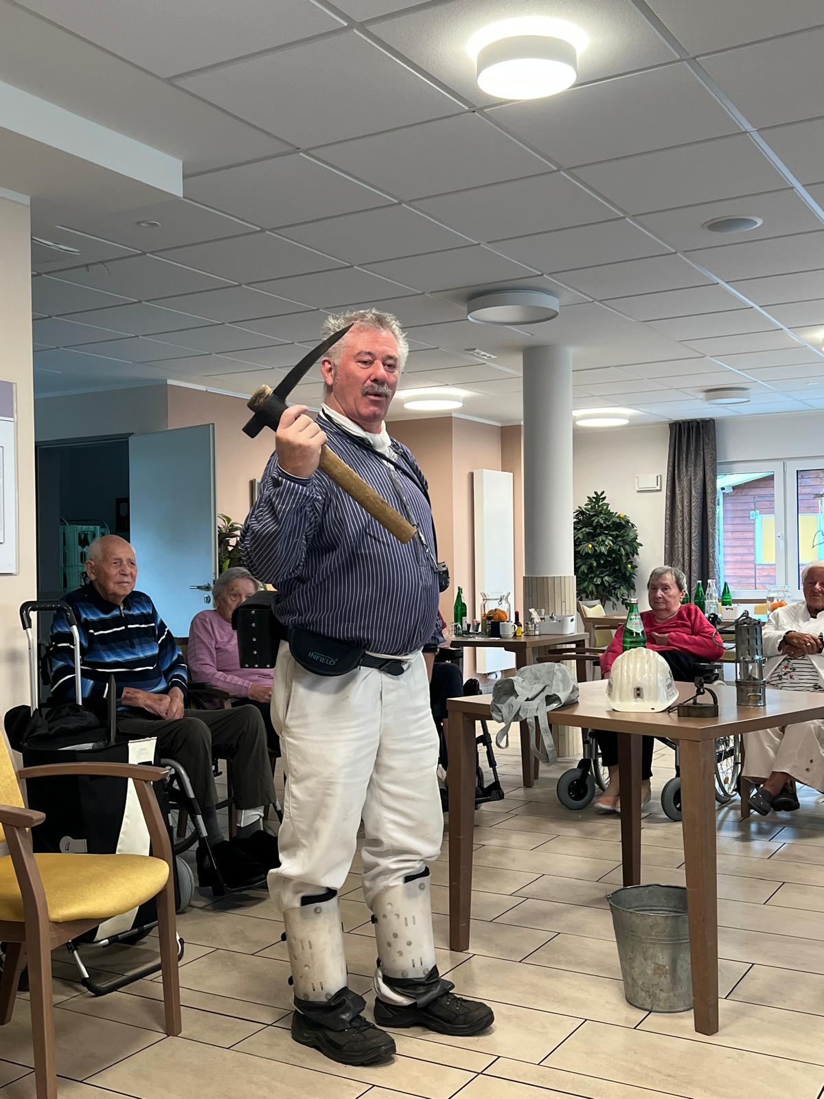 Im Ruhrgebiet sind viele unserer BewohnerInnen mit dem Bergbau groß geworden. Umso mehr freuten sie sich über die Geschichten, die Herr Lade aus seinem Arbeitsalltag unter Tage mitbrachte. Offen und lebendig erzählte er von seinem Leben als Steiger – von harter Arbeit, Zusammenhalt und besonderen Momenten tief unter der Erde.