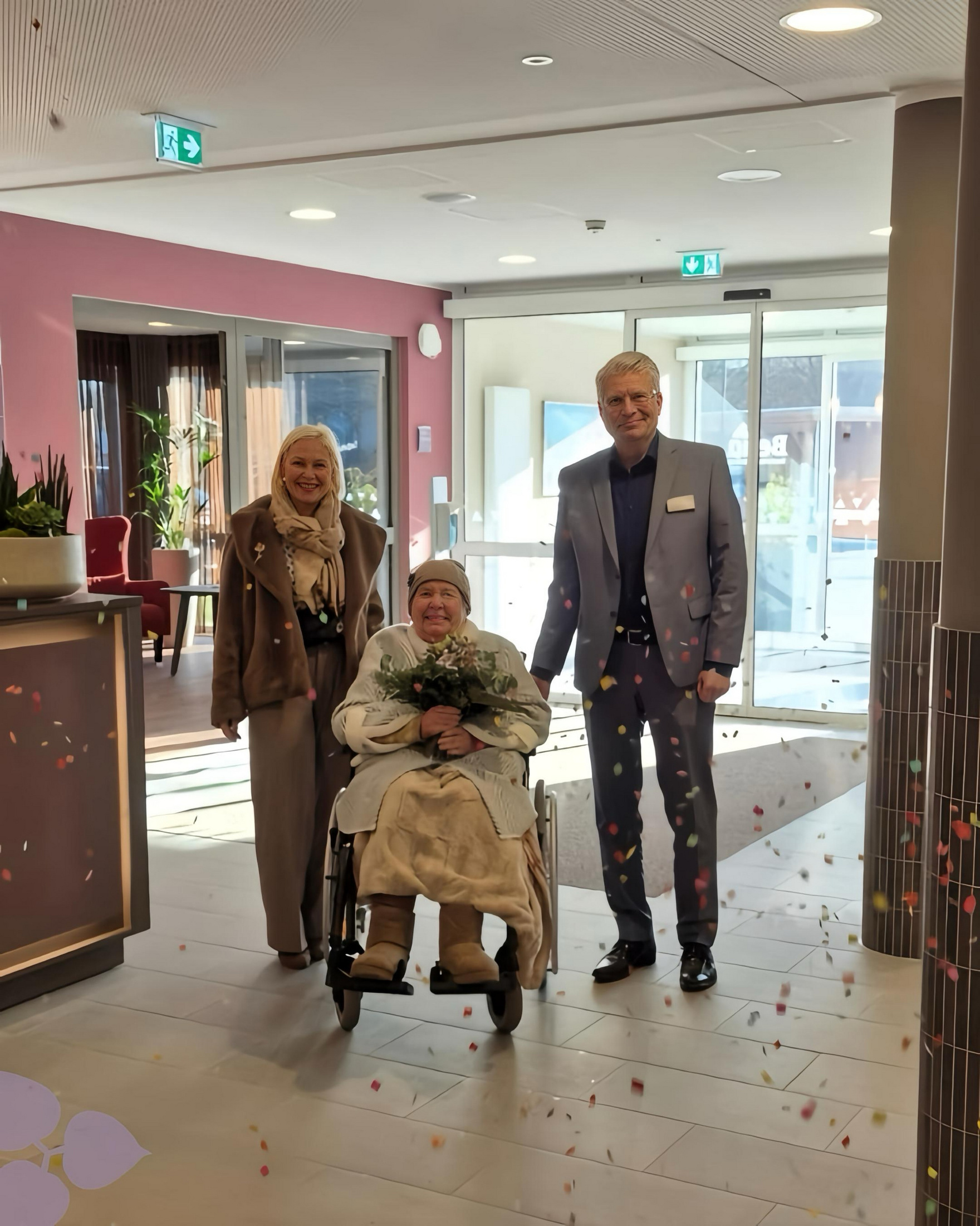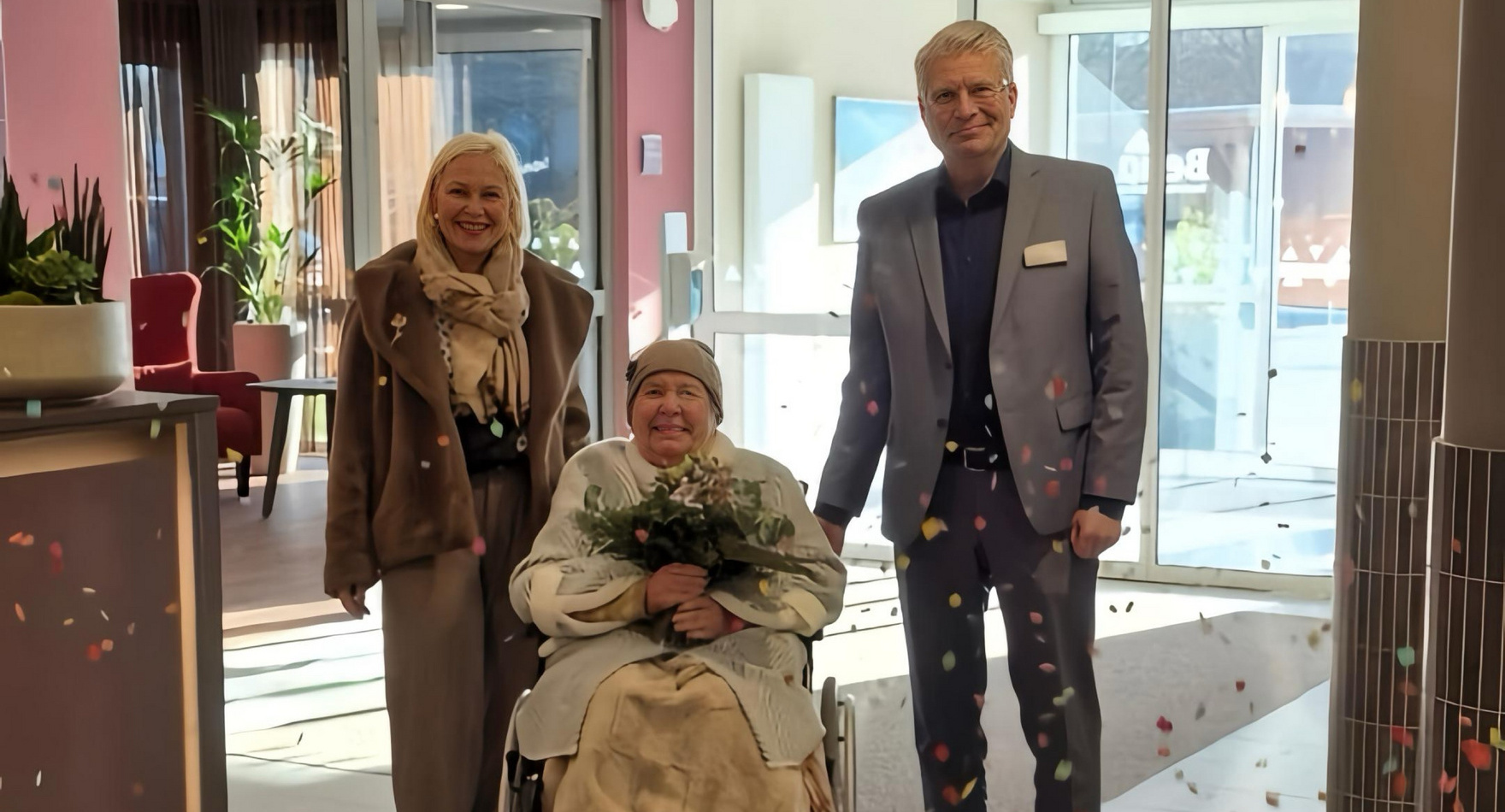 Lydia Heinrich betrat unsere Residenz durch einen Regen aus echtem (und emotionalem!) Konfetti, begleitet von ihrer Tochter. Belia Geschäftsführer Andreas Anspach, Einrichtungsleiter Michael Maurus und Qualitätsmanagerin Sara Schrötter hießen sie mit einem Strauß Blumen ganz herzlich willkommen. Auch die Küche schickte einen Gruß in Form einer wunderbaren Schokoladentorte.