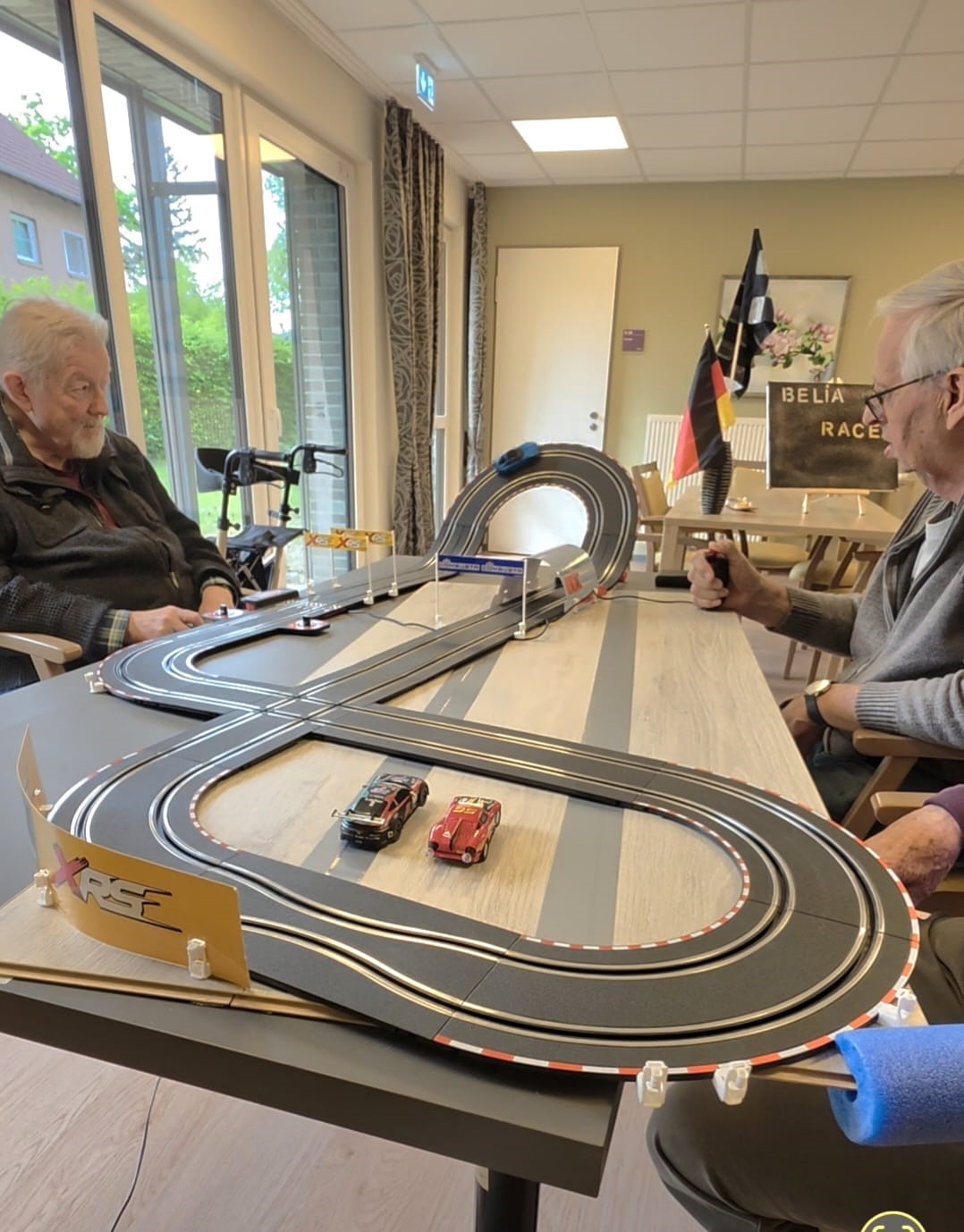 Parallel dazu wurde es im Therapieraum etwas rasanter: Dort lief ein kleines Autorennen, bei dem Konzentration und Spaß gleichermaßen gefragt waren.