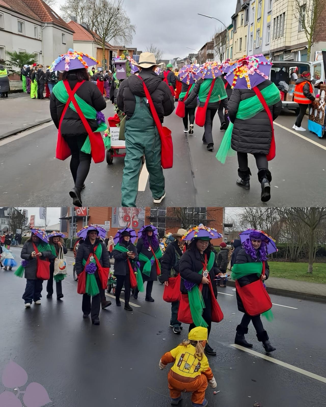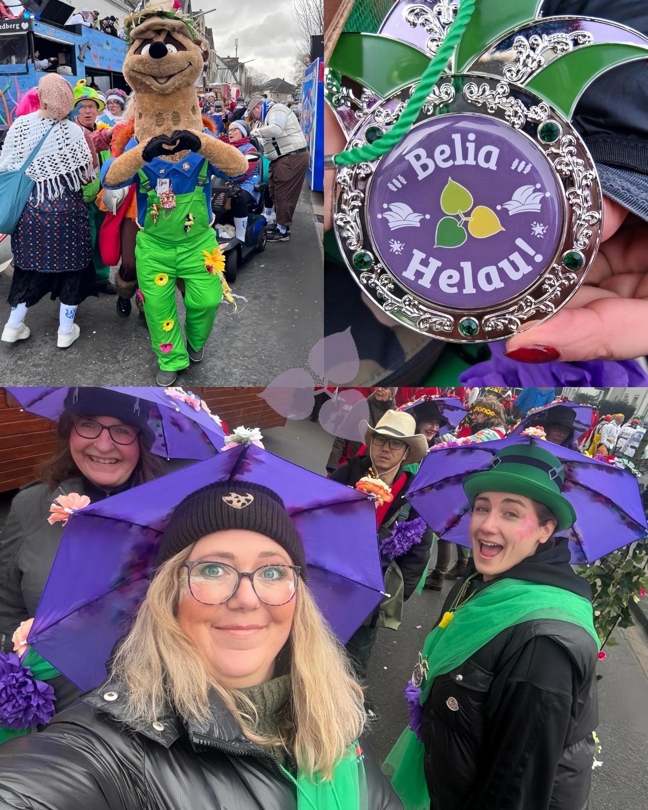 Trotz der häufigen Regenschauer war die Stimmung super. Am Straßenrand standen zahlreiche Jecke, die den Zug begeistert begleitet haben. Gut erkennbar in belia-lila und blumenbekränzt haben wir bestens gelaunt unseren Teil zur Stimmung beigetragen. Auch im übernächsten Jahr sind wir gerne wieder dabei. Denn wir sind Teil der Kamp-Lintforter Bürgerschaft und engagieren uns aus Überzeugung für unsere Stadt.