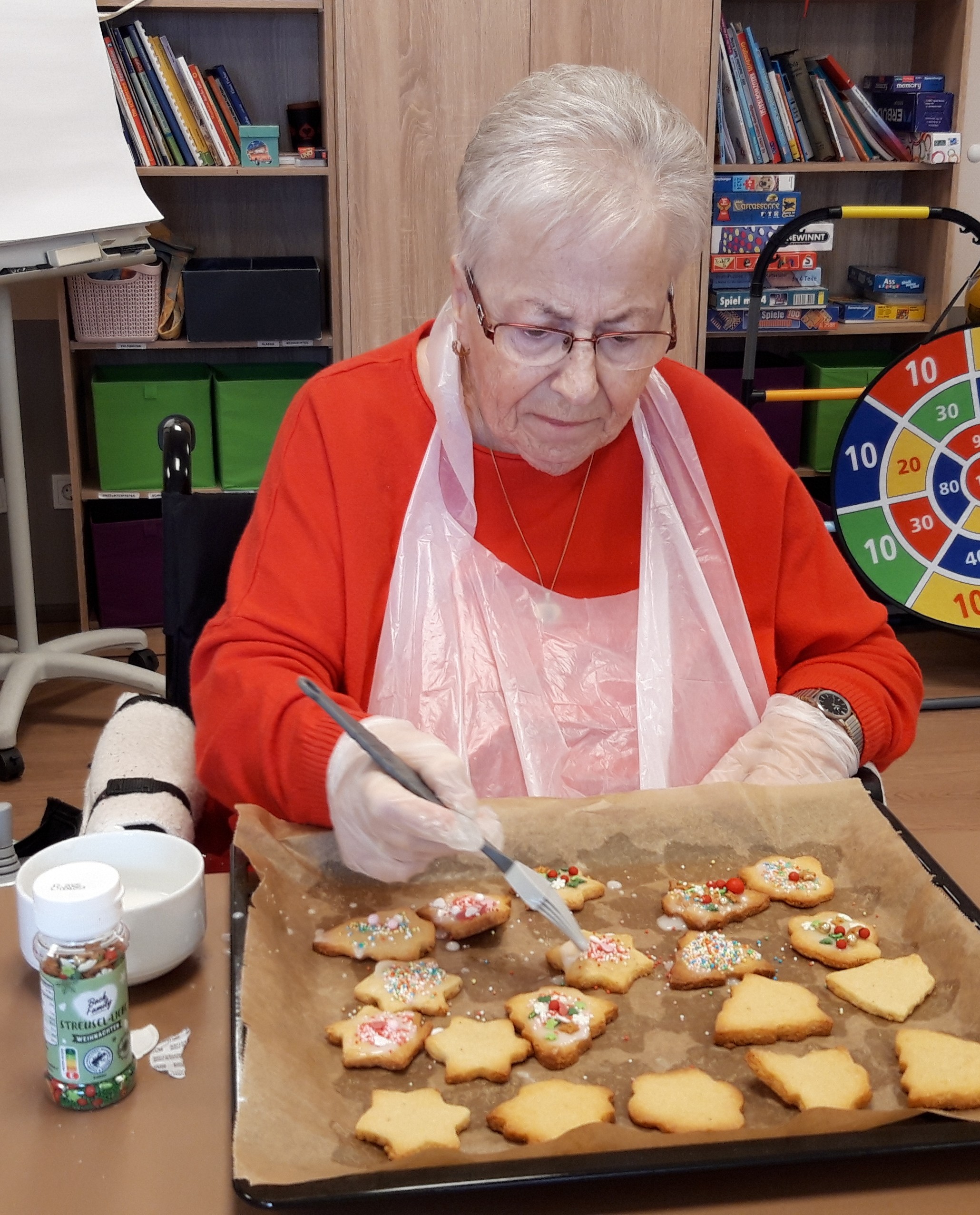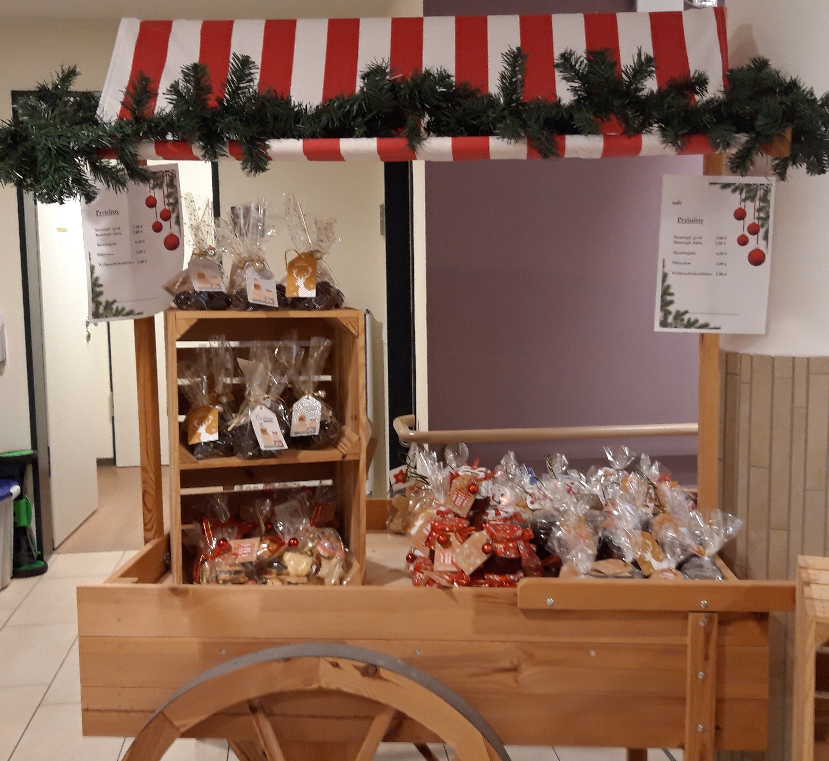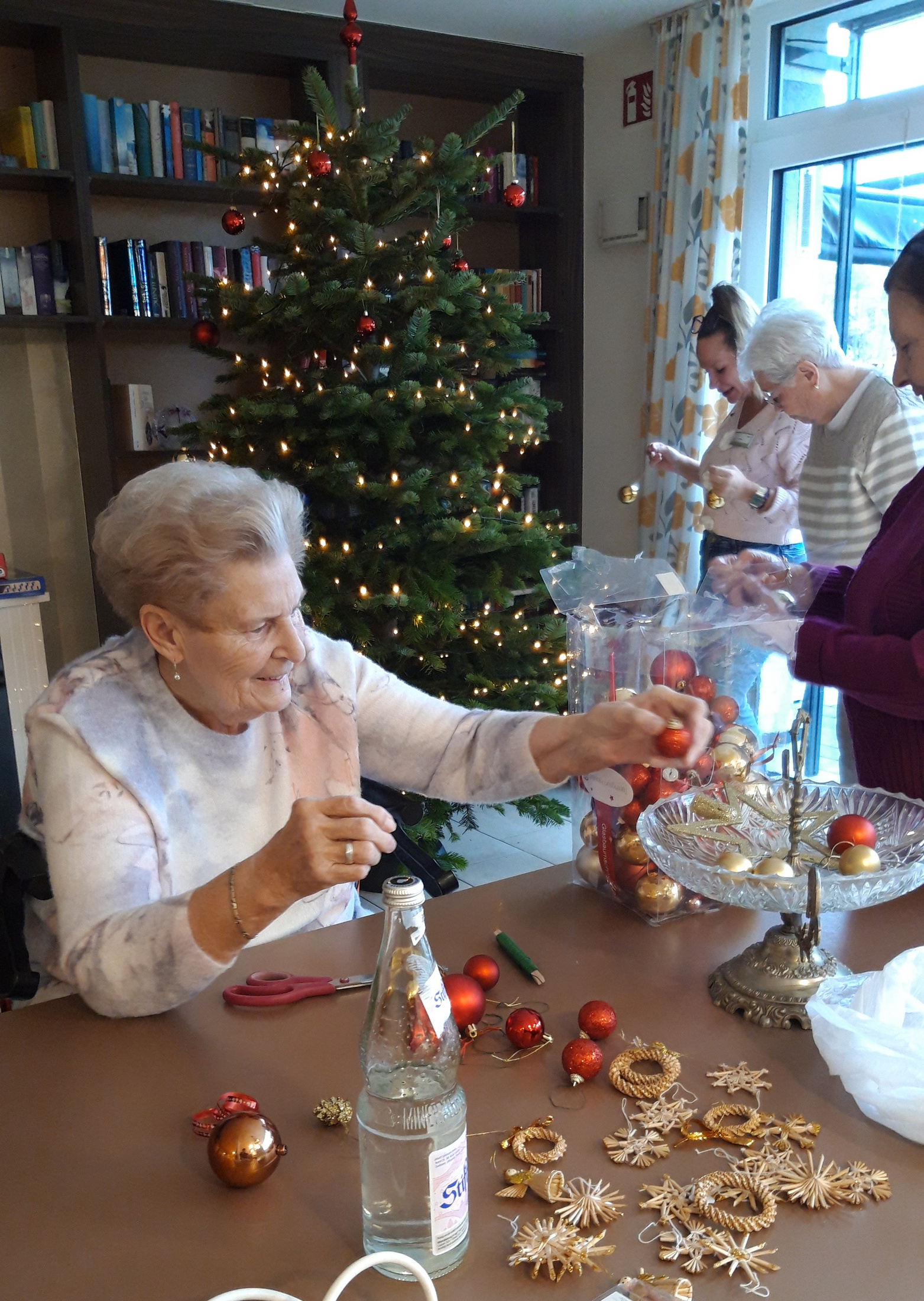 So ein Adventsmarkt erfordert einiges an Vorbereitung, es wurde gebacken, Rumkugeln wurden gerollt und Weihnachtsbäume wurden geschmückt, immer mit Unterstützung von Bewohnerinnen und Bewohnern.