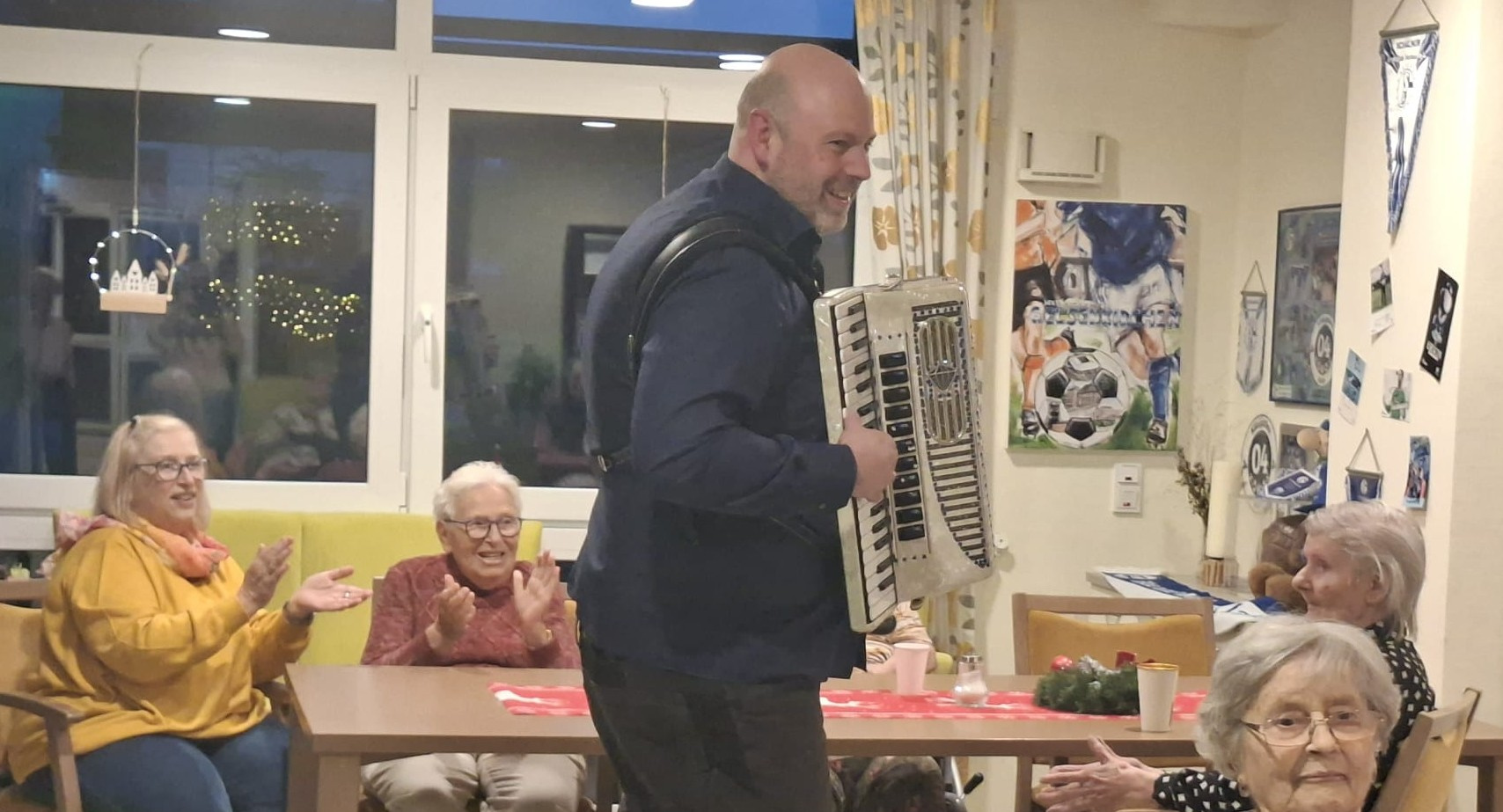 Den musikalischen Rahmen bildete der Entertainer Björn Wagner, der kurzfristig für einen erkrankten Künstler eingesprungen war. Neben weihnachtlicher Musik begeisterte er die Teilnehmenden mit Zaubertricks und Ballonfiguren. Nach seinem Auftritt bedankten sich Bewohnerinnen, Bewohner und Besucher mit dem „Steigerlied“, nicht wirklich ein Weihnachtslied, aber wir sind eben Schalke!