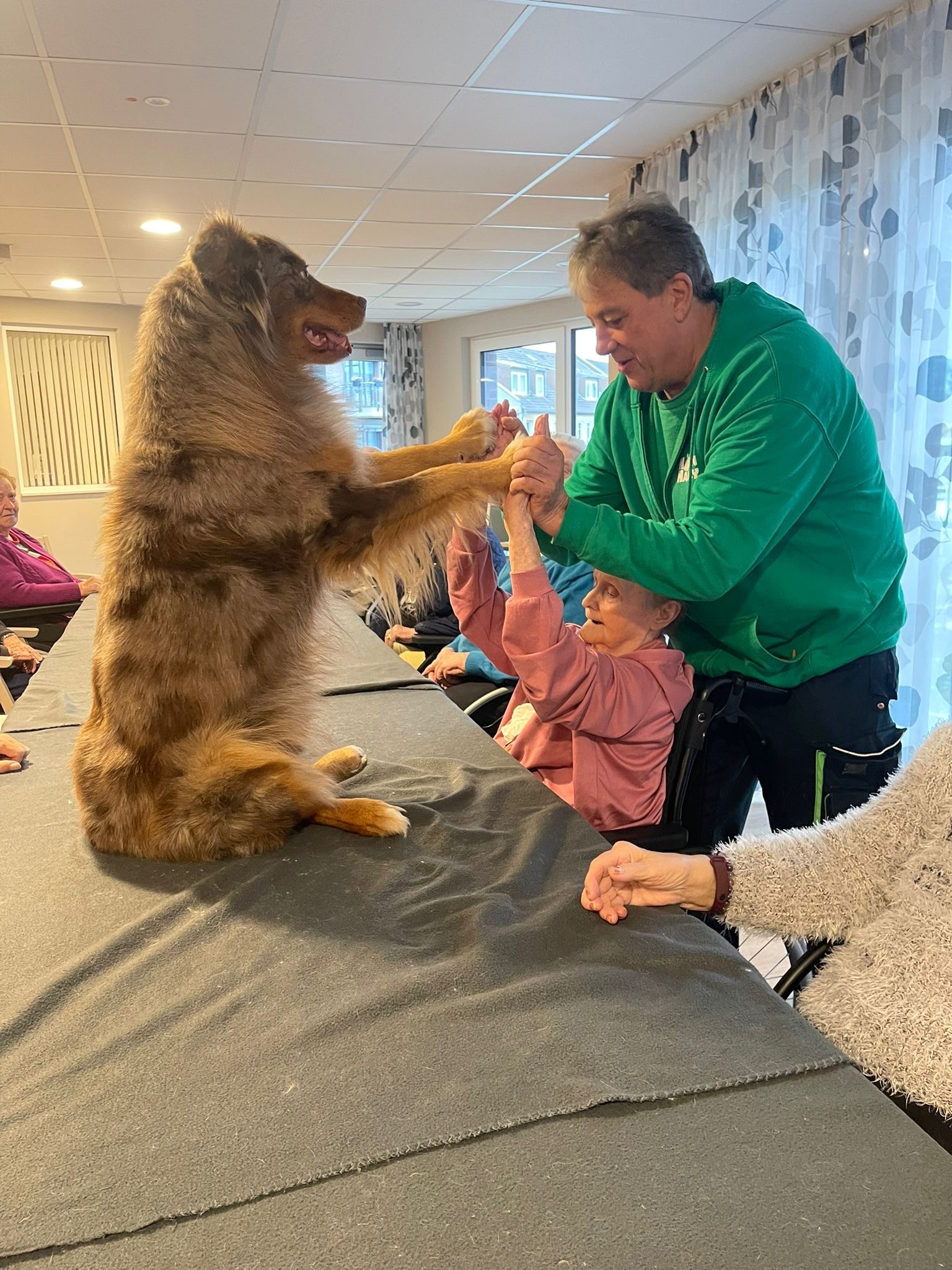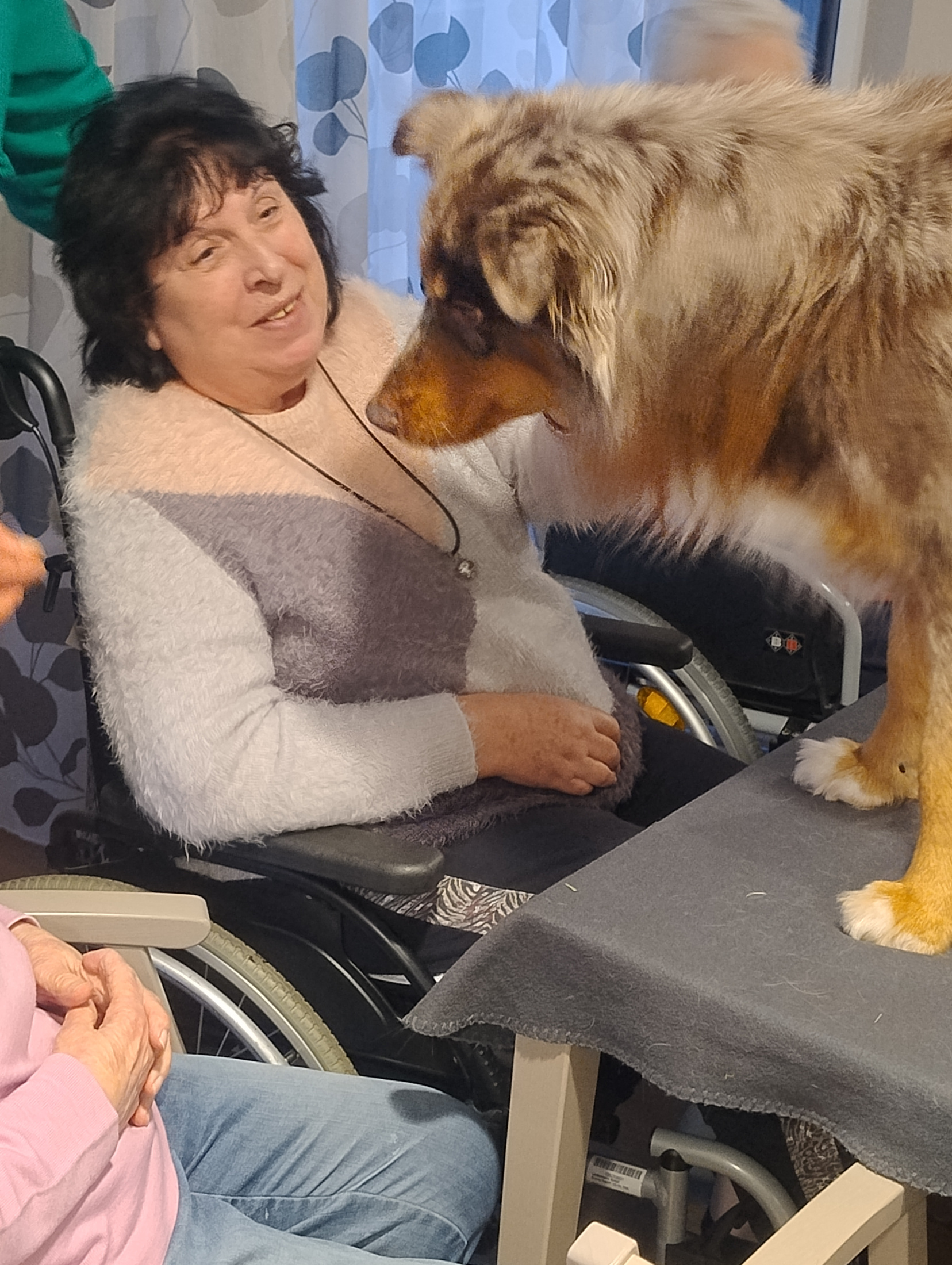 Für einige Seniorinnen und Senioren bot der tierische Besuch zudem die Gelegenheit, bestehende Unsicherheiten zu überwinden. In einer ruhigen und geschützten Atmosphäre wagten sie erste Berührungen und sammelten neue, positive Erfahrungen. Diese Momente trugen sichtbar zur Stärkung des Selbstvertrauens bei.