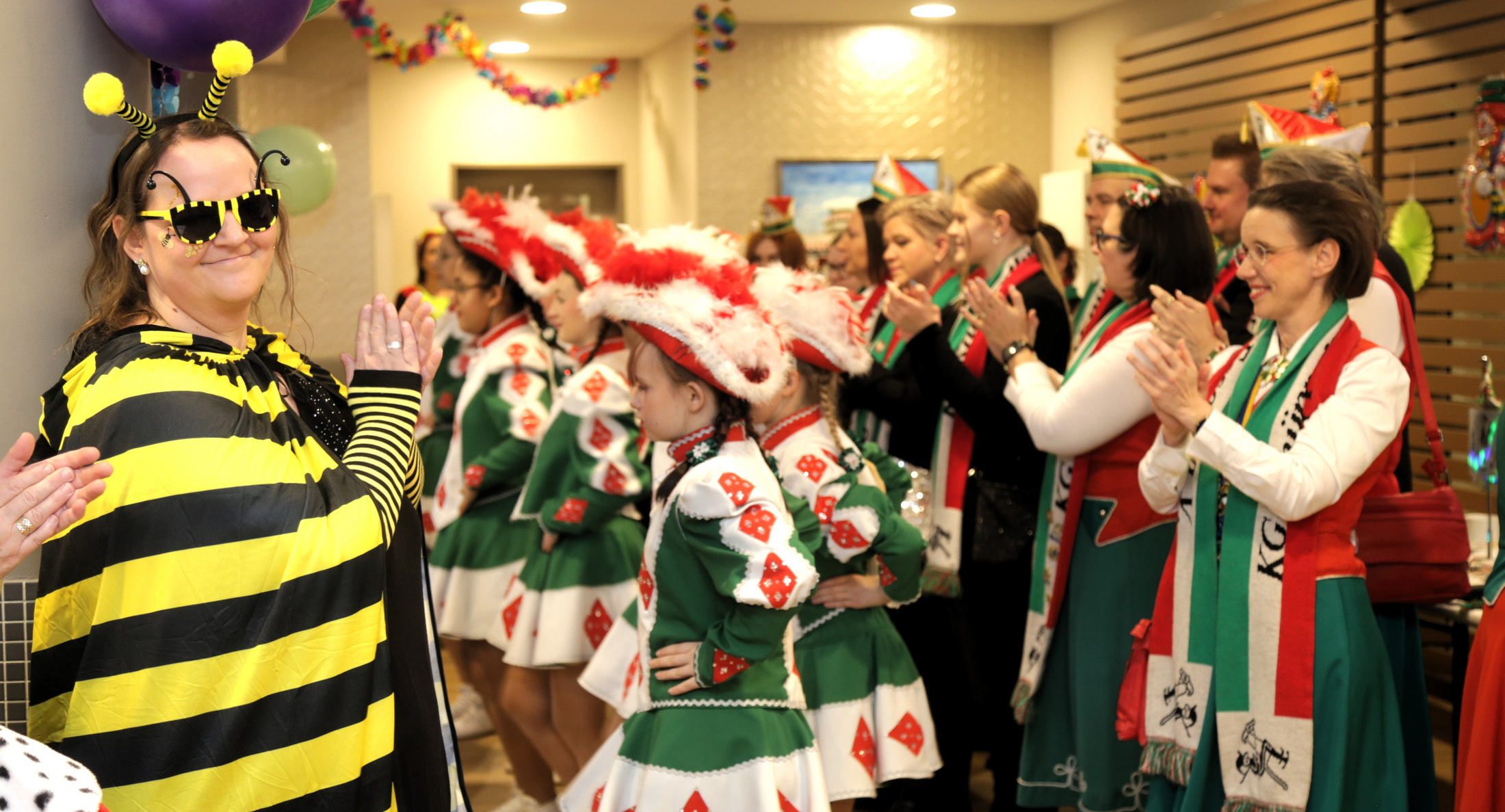 Ein besonderer Programmpunkt war der Besuch einer Karnevalsgesellschaft, die mit einem vielfältigen Bühnenprogramm für Begeisterung sorgte. Mit einem gemeinsamen „Helau“ und „Alaaf“ wurden die Mitglieder empfangen. Sowohl das kleine als auch das große Prinzenpaar beeindruckten mit ihren festlichen Kostümen. Das Programm umfasste unter anderem karnevalistische Gesangsdarbietungen, Auftritte einer Tanzgarde, einer Schultanzgruppe sowie eine humorvolle Comedyshow. Viele Gäste beteiligten sich aktiv, sangen mit, klatschten im Takt oder bewegten sich zur Musik.