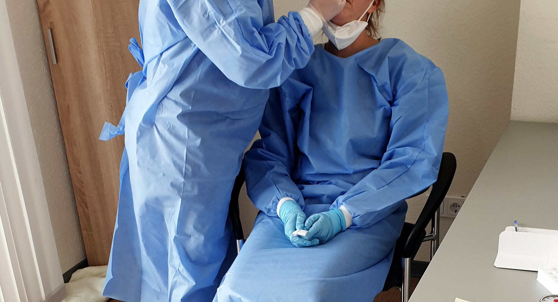 Überruhr-Holthausen. Am Mittwoch, den 10.02.2021, durfte der Auszubildende Herr Hensing der Belia Seniorenresidenz Holthausen erstmals einen Schnelltest durchführen.