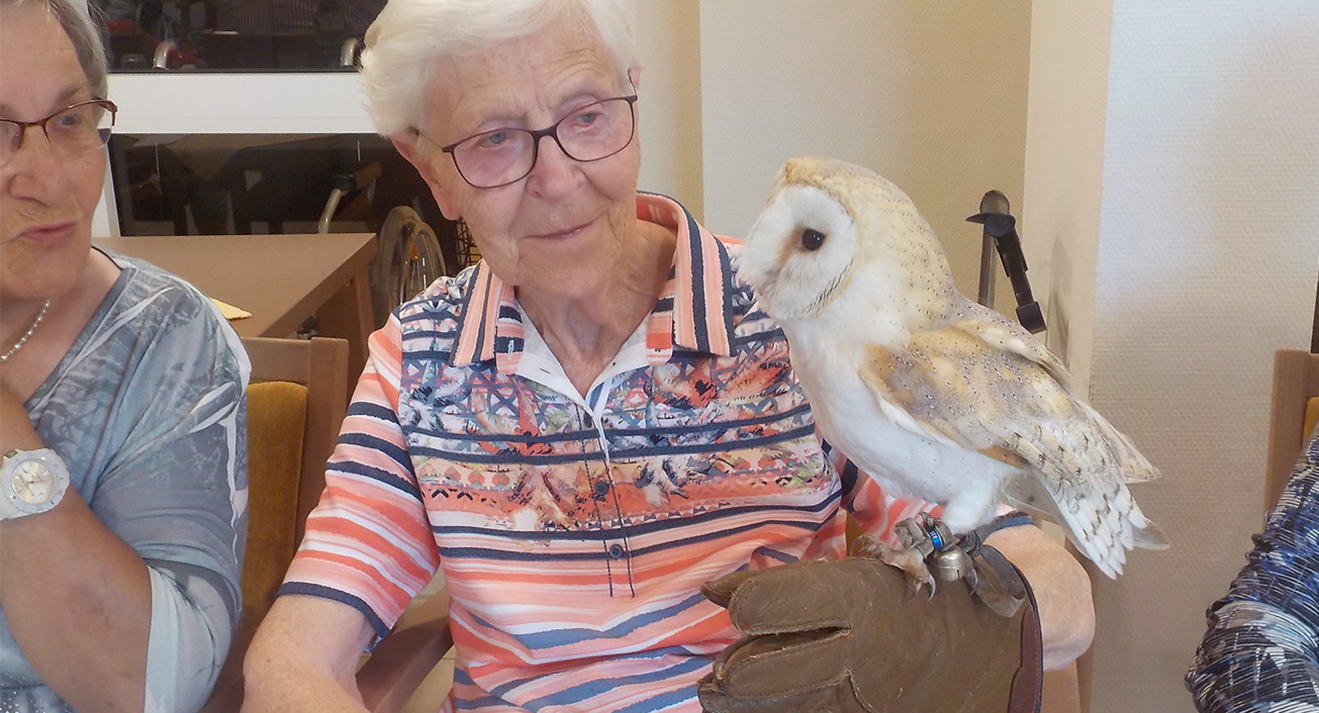 Schalke. Am Nachmittag des 05.07.2019 konnten die Bewohner und Bewohnerinnen ein weiteres Highlight in unserer Einrichtung bestaunen: Die Falknerin Frau Sabine Ehmanns-Kramp besuchte mit zahlreichen unterschiedlichen Tierarten die Seniorenresidenz.