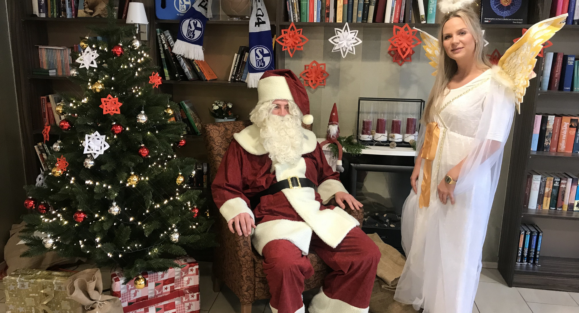 Schalke. Am 06.12.2017 bekam die Seniorenresidenz Schalke hohen Besuch mit weißem Rauschebart. Der Nikolaus mit seinem Engel kamen zu Besuch in die Belia Seniorenresidenz um den Bewohnern einen schönen Nachmittag zu bescheren.