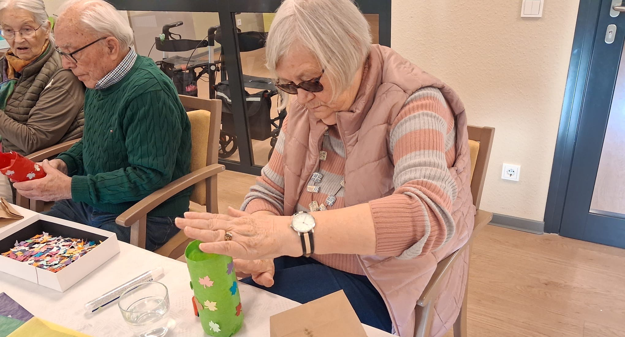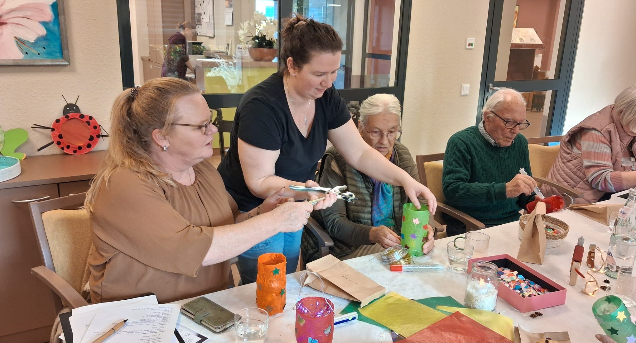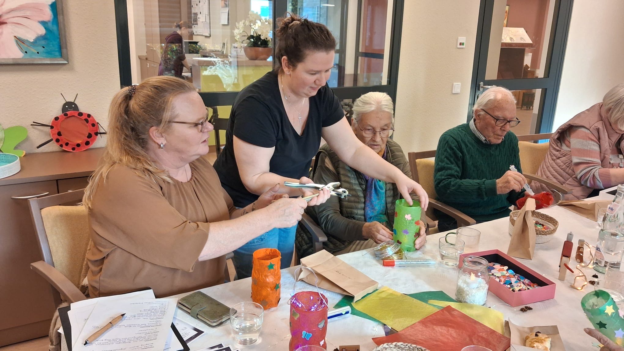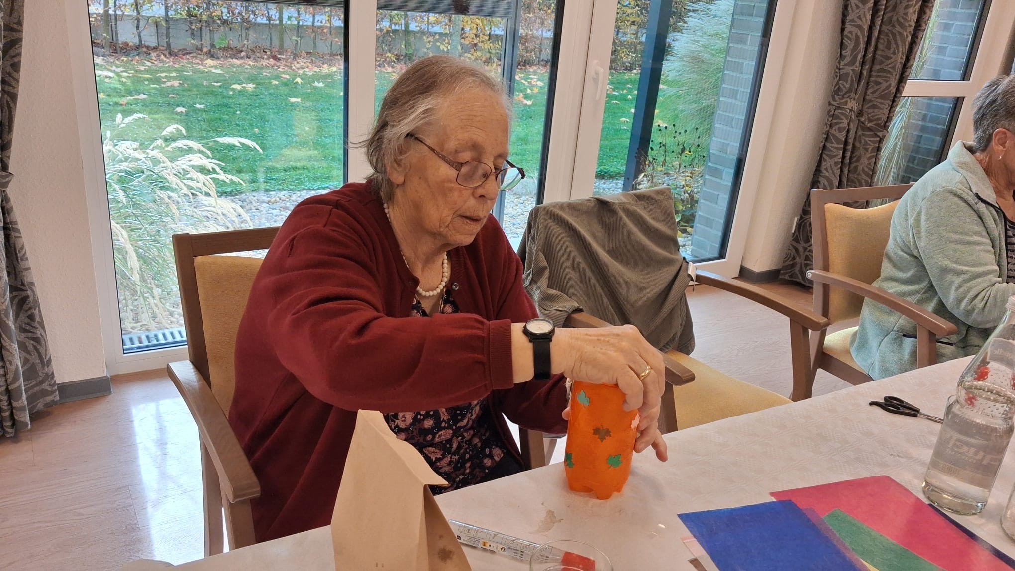 Ihr Thema: St. Martin. Debora hat eine Bewegungsgeschichte eigenständig vorbereitet und gemeinsam mit den Gästen Laternen gebastelt. Die Kommunikation lief flüssig, und an den Gesichtern der Gäste war deutlich zu sehen, wie sehr ihre Präsentation berührte.