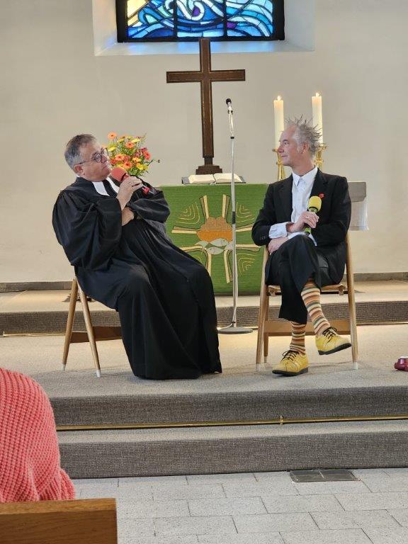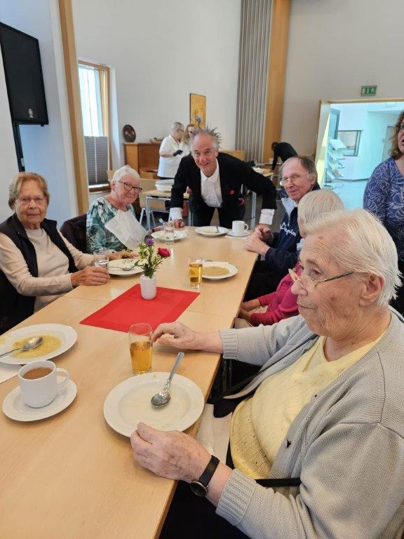 Alle Beteiligten beteten das „Vater unser“ und lachten gemeinsam über eine Andacht mit dem Pastor und einem Clown, welcher den Gottesdienst begleitete. Bei dem Lied „Heut ist ein Tag, an dem ich lachen kann“, welches der Clown gesungen hat, war auch die Lachmuskulatur gefordert. Im Anschluss an den Gottesdienst wurden alle zum gemeinsamen Käse-Lauch-Suppe-Essen in das Gemeindehaus eingeladen.